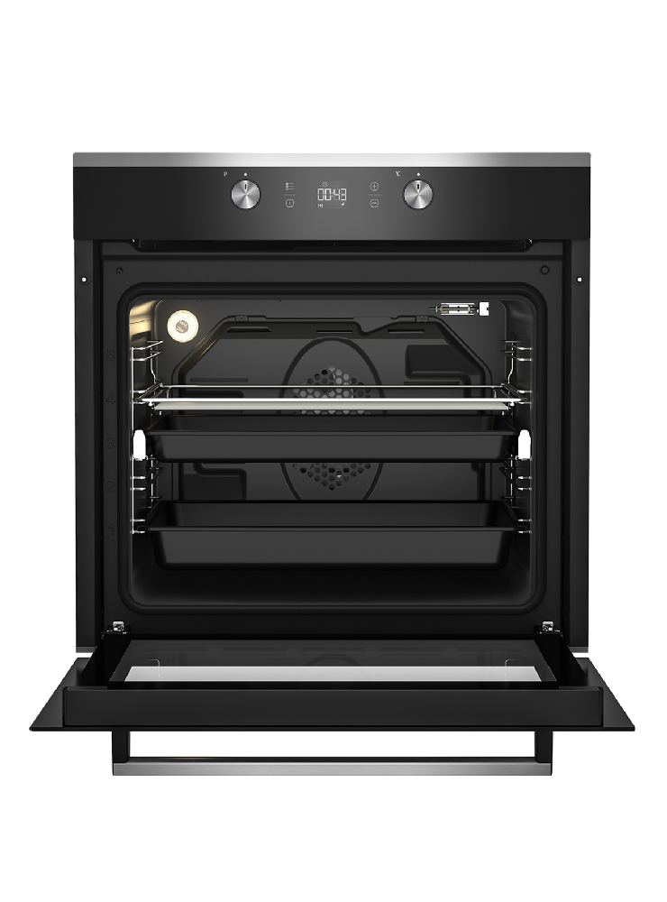 Элегантная встраиваемая духовка черного цвета с кольцевым нагревательным элементов, телескопическими направляющими и технологией пиролитической очистки. Духовой шкаф работает в режиме конвекции, гриля, медленного приготовления, 3D-приготовления и с включенным вентилятором. Удобное управление с помощью сенсорных кнопок и утапливаемых механических переключателей. Технология SoftClose обеспечивает плавное и безопасное закрытие дверцы духовки.