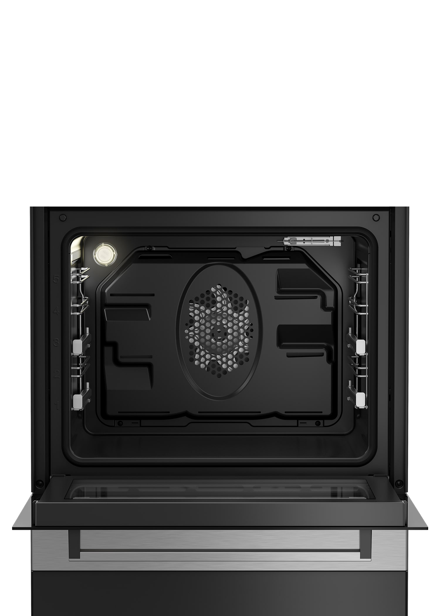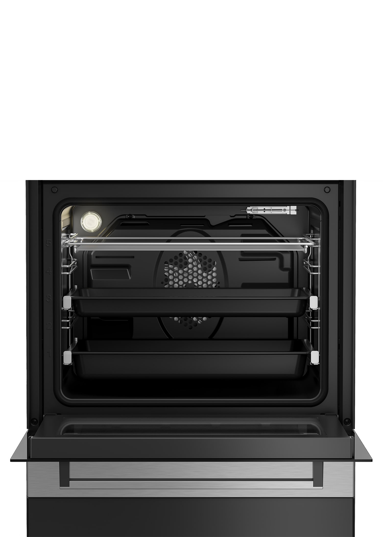 Электрическая плита шириной 60 см со стеклокерамической варочной панелью и четырьмя конфорками разного диаметра с возможностью объединения зон нагрева. Встроенный духовой шкаф имеет несколько режимов приготовления, включая гриль, разморозку и 3D-циркуляцию воздуха. Электрическая духовка оснащена удобной подсветкой и съемными направляющими для противней, а ее объема 72 л хватит на приготовление нескольких блюд для всей семьи. Благодаря функции очистки паром стеклянную дверцу и внутреннюю поверхность духовки легко чистить.