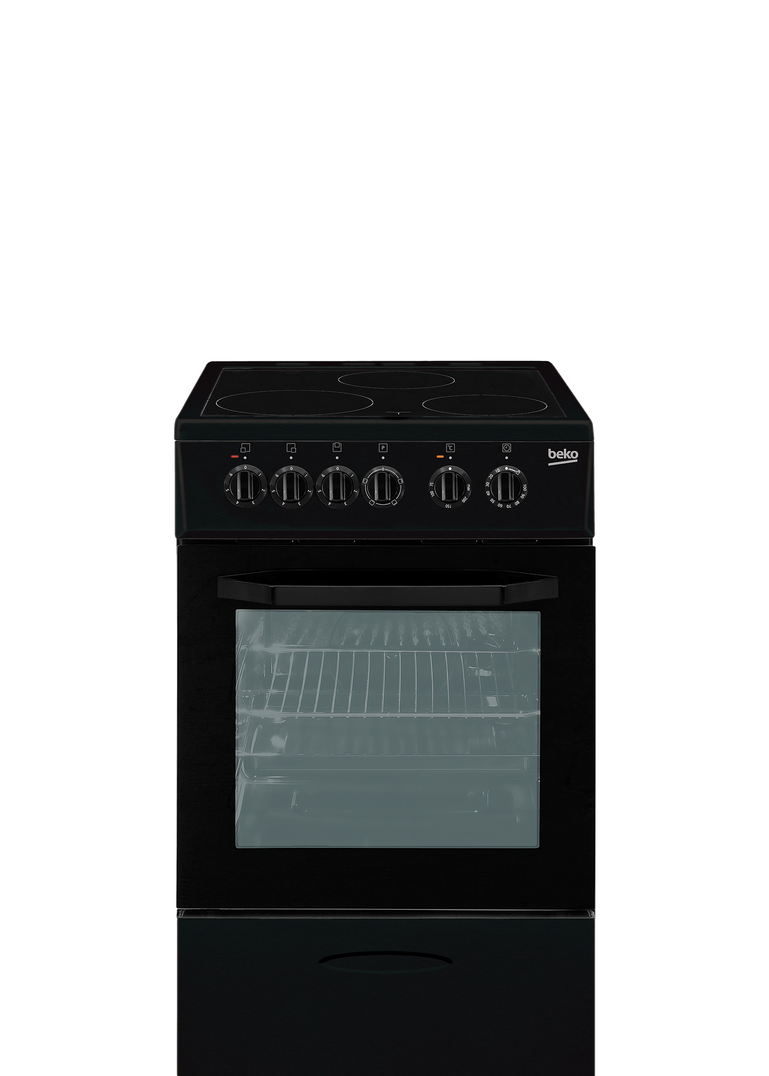 Отдельностоящая электрическая плита черного цвета имеет ширину 50 см и удобное механическое управление с индикацией работы. Стеклокерамическая варочная поверхность оснащена 3 конфорками, а электрический духовой шкаф плиты со стеклянной дверцей работает в режимах верхнего, нижнего нагрева и гриля. В комплектацию плиты входят стандартный эмалированный противень и решетка, а внизу расположен отсек с откидной крышкой для хранения посуды.