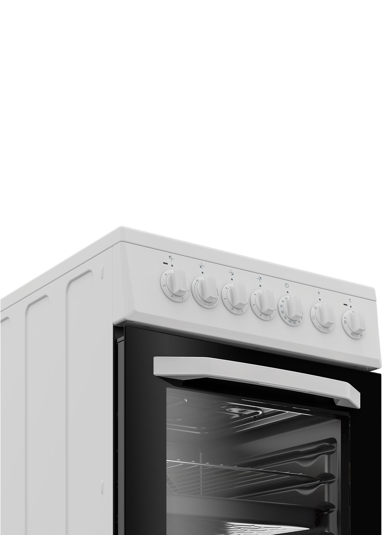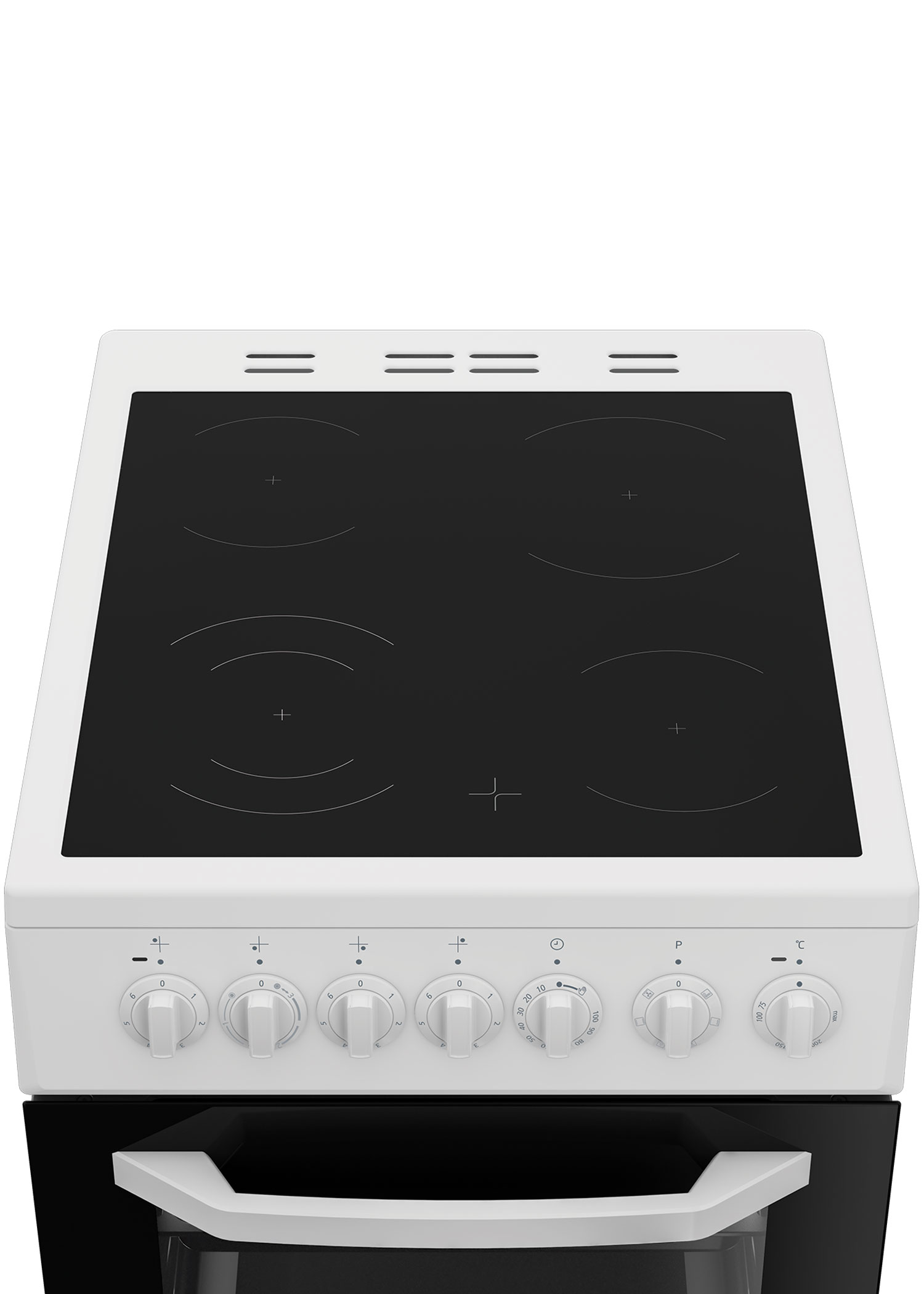 Электрическая плита шириной 50 см с механическим управлением и стеклокерамической варочной панелью на четыре конфорки, которую легко чистить. Плита оснащена механическим таймером с автоотключением для удобного приготовления любимых блюд. Встроенный электрический духовой шкаф имеет несколько режимов приготовления, включая гриль, вентилятор и быстрый разогрев. Благодаря стеклянной поверхности дверцы духовки и функции очистки паром духовой шкаф легко чистить после каждого использования.