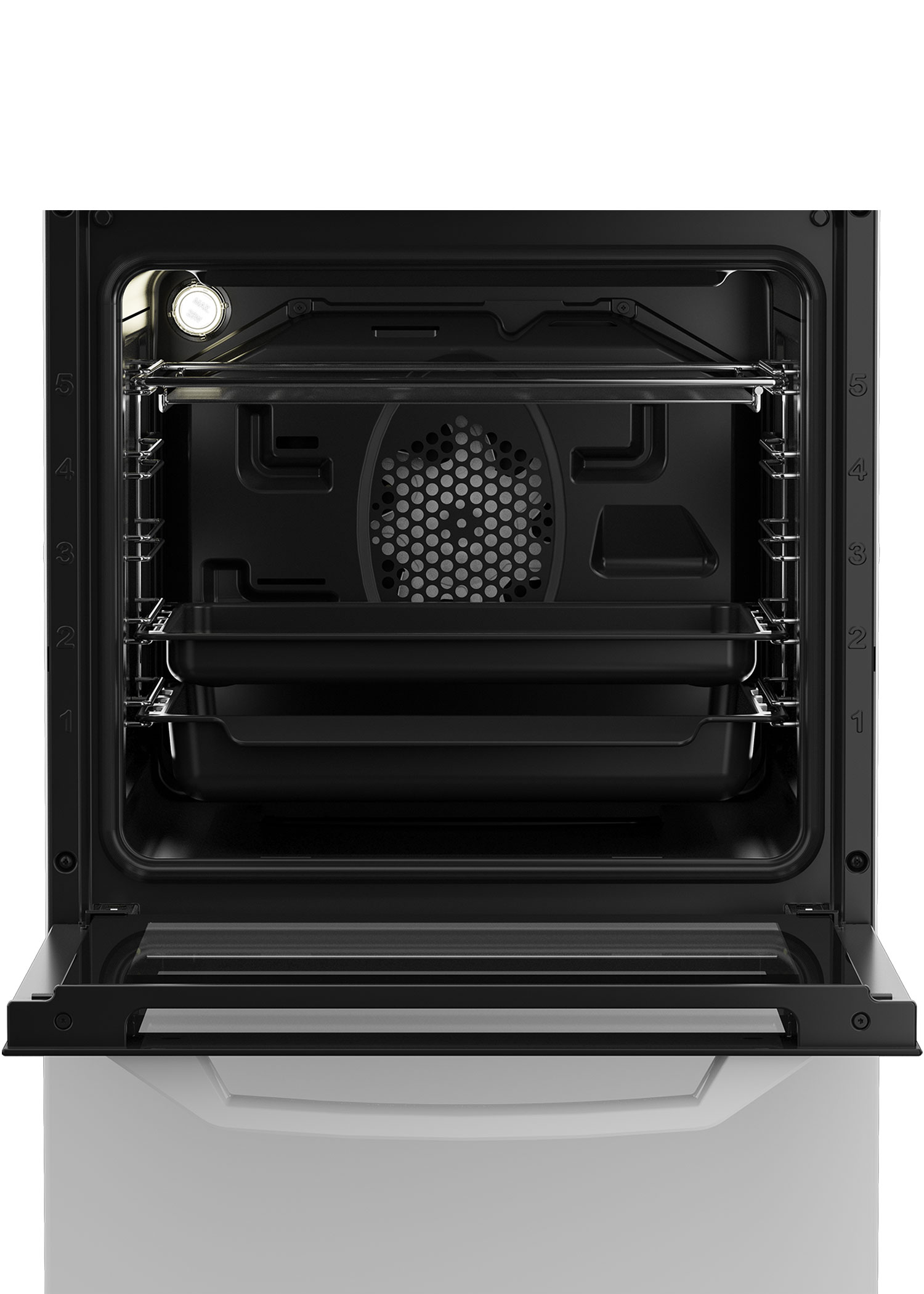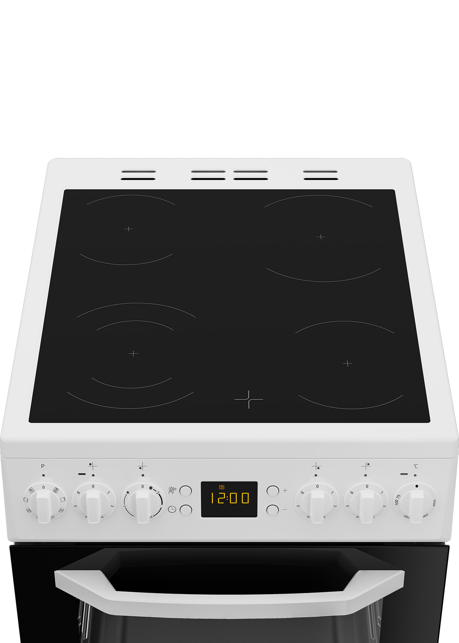 Электрическая плита со встроенным духовым шкафом, механическим управлением, цифровым таймером и выдвижным ящиком для хранения посуды. Варочная поверхность плиты шириной 50 см имеет четыре конфорки разного диаметра и полностью выполнена из стеклокерамики, которую легко чистить. Духовка имеет восемь режимов приготовления, включая верхний и нижний нагрев, гриль, разморозку и 3D-циркуляцию воздуха.