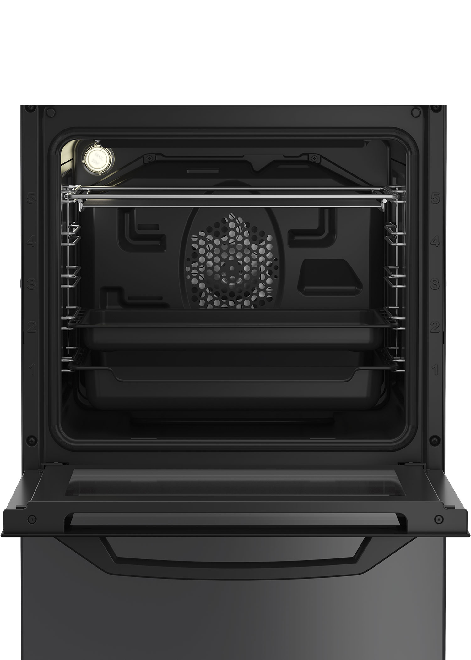 Электрическая плита шириной 50 см со встроенным духовым шкафом и удобным механическим управлением с цифровым дисплеем. Плита имеет четыре конфорки разного диаметра, одна из которых разделена на две зоны нагрева. Духовка работает на восьми режимах, включая верхний и нижний нагрев, гриль, разморозку и 3D-циркуляцию воздуха. Стеклянную варочную панель и стеклянную дверцу духовки легко чистить после каждого приготовления.