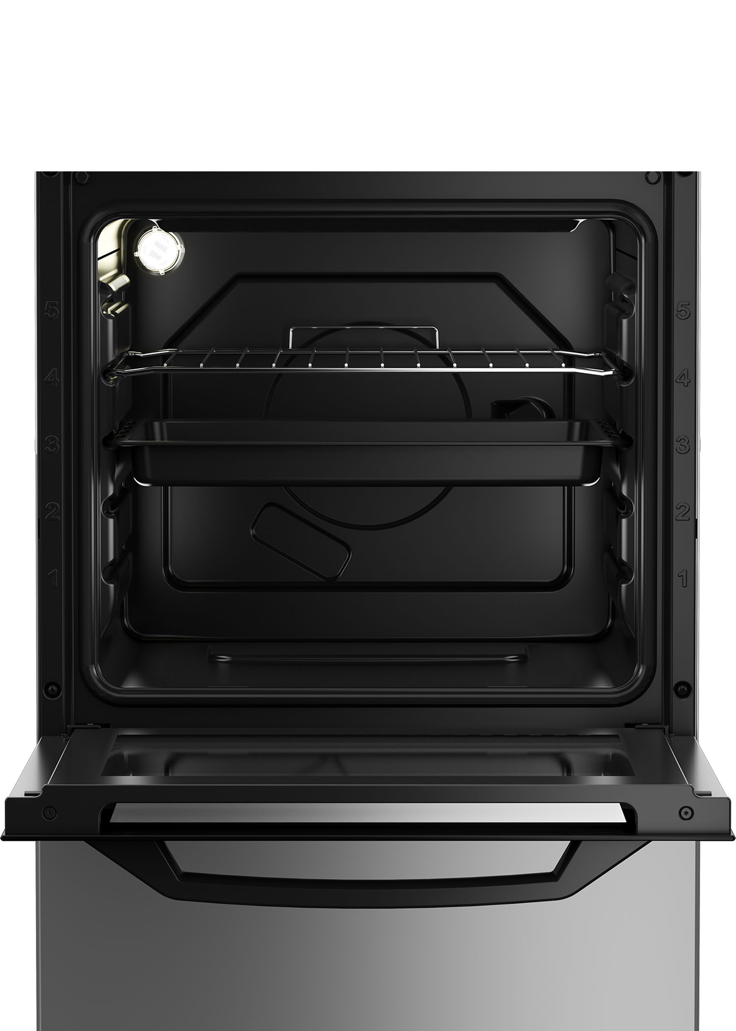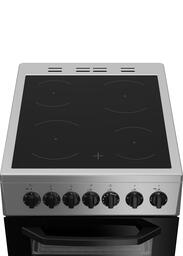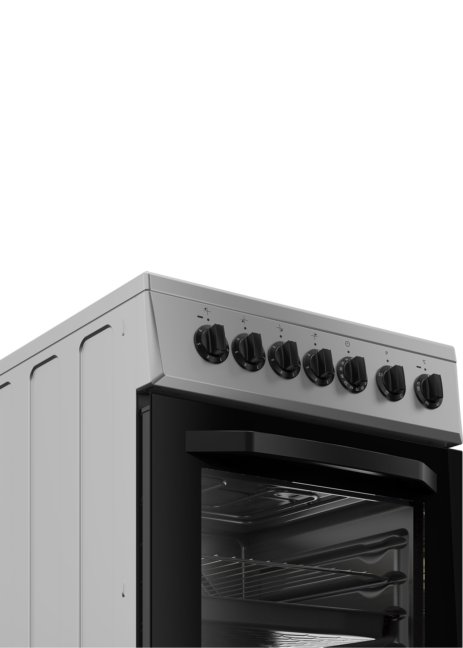 Электрическая плита шириной 50 см и класса энергопотребления А. Варочная поверхность плиты выполнена из стеклокерамики и оснащена 4 конфорками разного диаметра. Духовка объемом 60 л имеет удобный термостат, механический таймер с автоматическим отключением и несколько режимов работы, включая верхний и нижний нагрев и гриль. Эмалированное покрытие облегчает уход за духовкой после использования. Внизу плиты расположен вместительный ящик с откидной крышкой для хранения посуды.