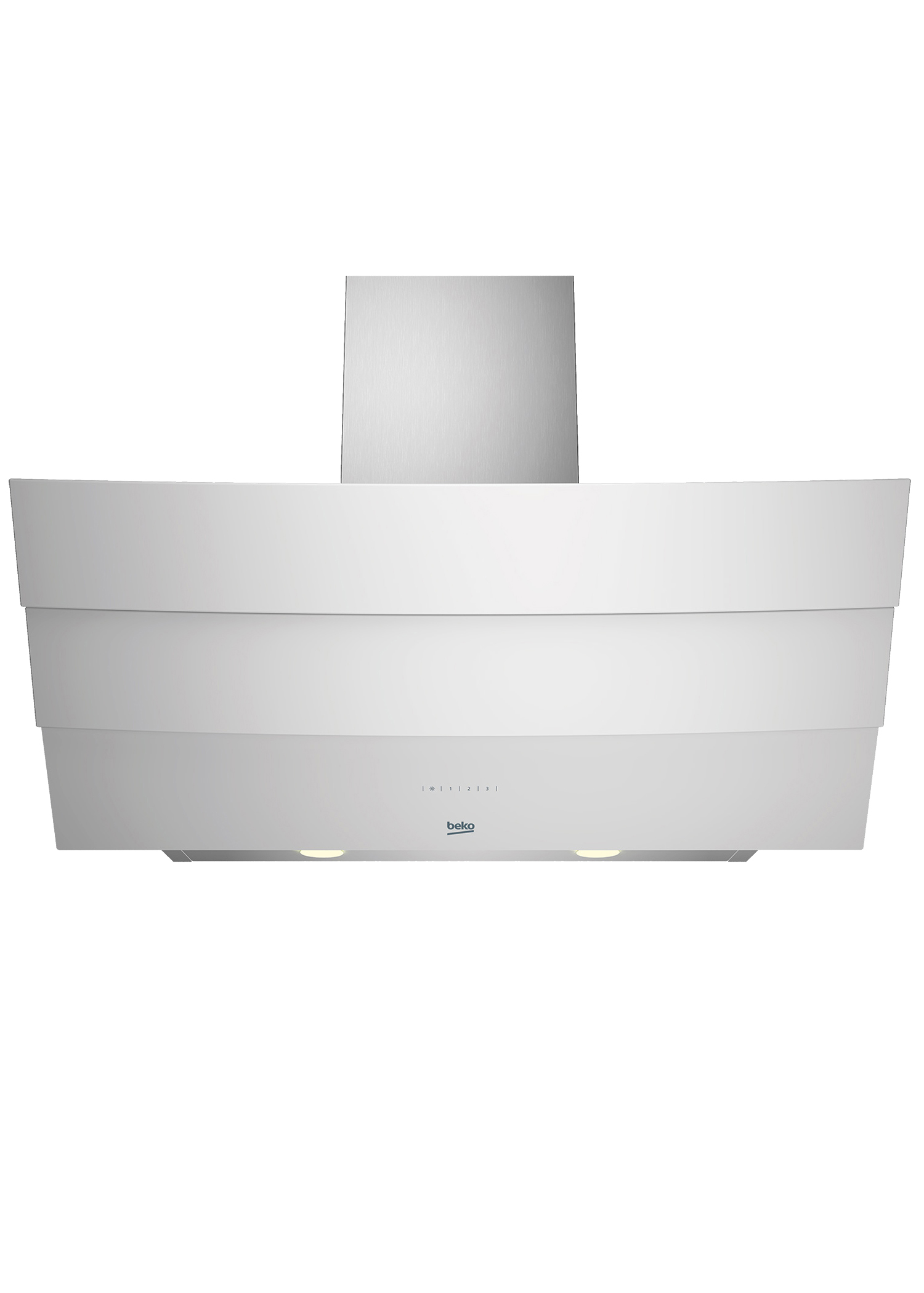 Пристенная вытяжка Beko шириной 90 см выполнена в белом цвете и наклонном дизайне и имеет удобное сенсорное управление. Вытяжка предлагает 3 уровня мощности и функцию рециркуляции воздуха на кухне. Вытяжка оснащена 2 металлическими фильтрами, которые улавливают жир во время приготовления еды, и угольным фильтром, который поглощает дым и запахи.