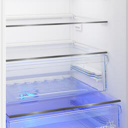 Просторный двухкамерный холодильник Beko B3DRCNK402HXBR станет отличным выбором для большой семьи или для тех, кто часто готовит и ценит удобство хранения. Общий объем камер составляет 357 литров, что позволяет держать под рукой все необходимое. В холодильной камере предусмотрена зона свежести с температурой 0–3 °C, которая создает оптимальные условия для хранения скоропортящихся продуктов. Для овощей и фруктов предусмотрен отдельный ящик с технологией HarvestFresh, которая имитирует естественный цикл солнечного света для фотосинтеза, продлевает свежесть и помогает сохранить витамины. Функция быстрой заморозки поддерживает стабильную температуру даже при загрузке большого количества свежих продуктов.