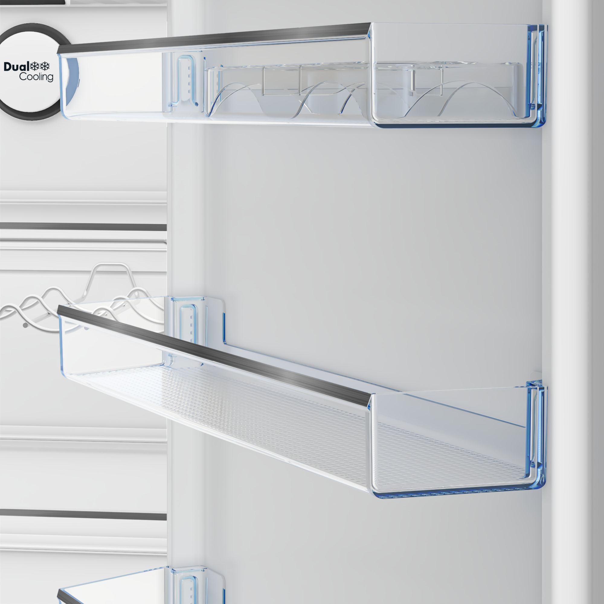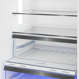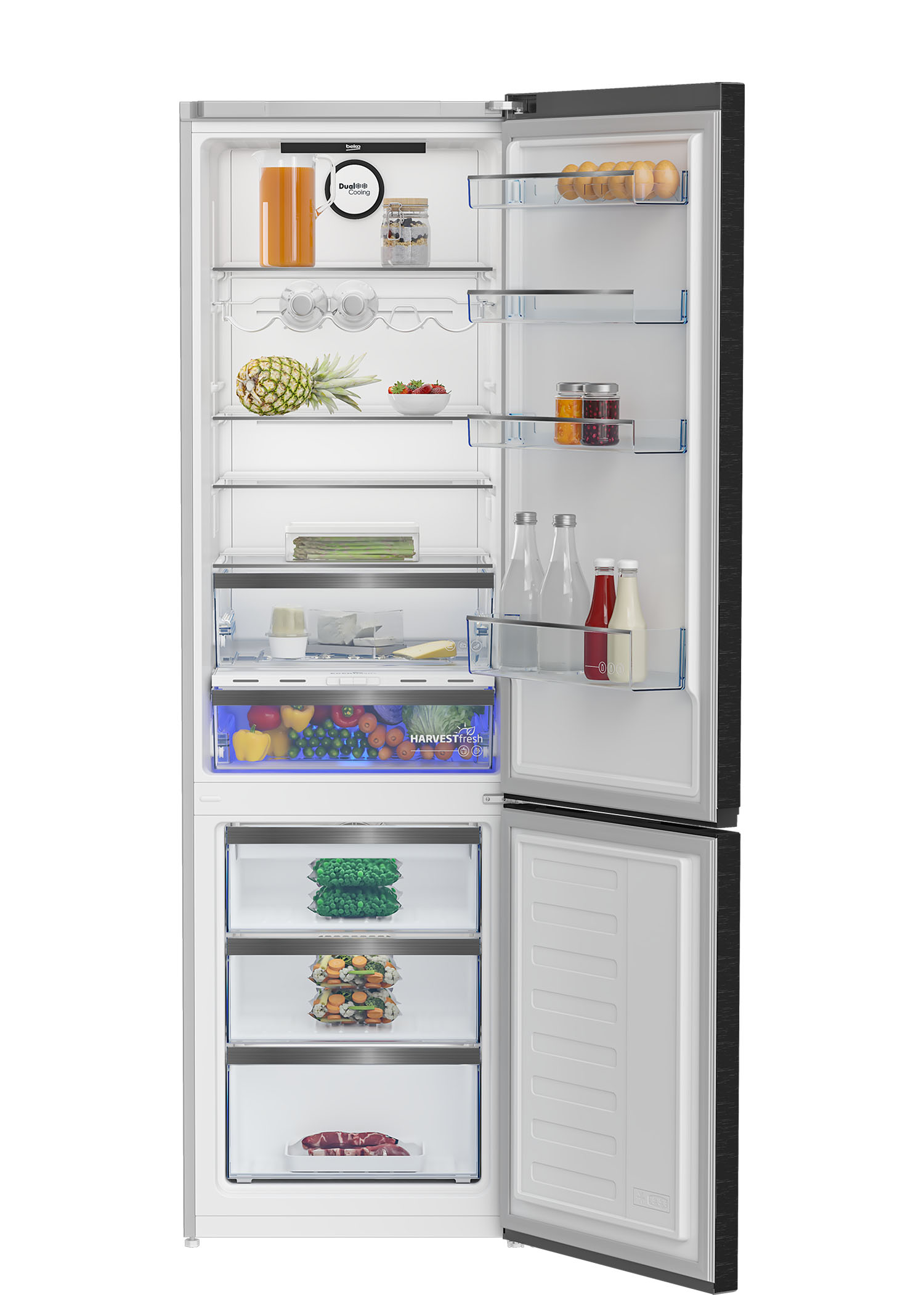 Черный двухкамерный холодильник с нижней морозильной камерой имеет высоту 2 метра, класс энергопотребления А++, энергосберегающий режим работы «Отпуск» и низкий уровень шума. Холодильник оснащен отделением Everfresh для фруктов и овощей, в котором продукты хранятся дольше благодаря поддержанию оптимальной влажности внутри. Технология 3-х цветов HarvestFresh продлевает фотосинтез овощей и фруктов, дольше сохраняя их натуральный вкус и витамины. Двухконтурная система охлаждения NoFrost Dual Cooling (Ноу Фрост) обеспечивает раздельное охлаждение холодильной и морозильной камер и предотвращает образование льда на стенках, поэтому холодильник не нужно размораживать, а запахи не смешиваются. Оснащен долговечным и надежным инверторным мотором Pro Smart – он отличается невысоким энергопотреблением и сниженным уровнем шума. Гарантия на эффективную и бесшумную работу компрессора – 10 лет.