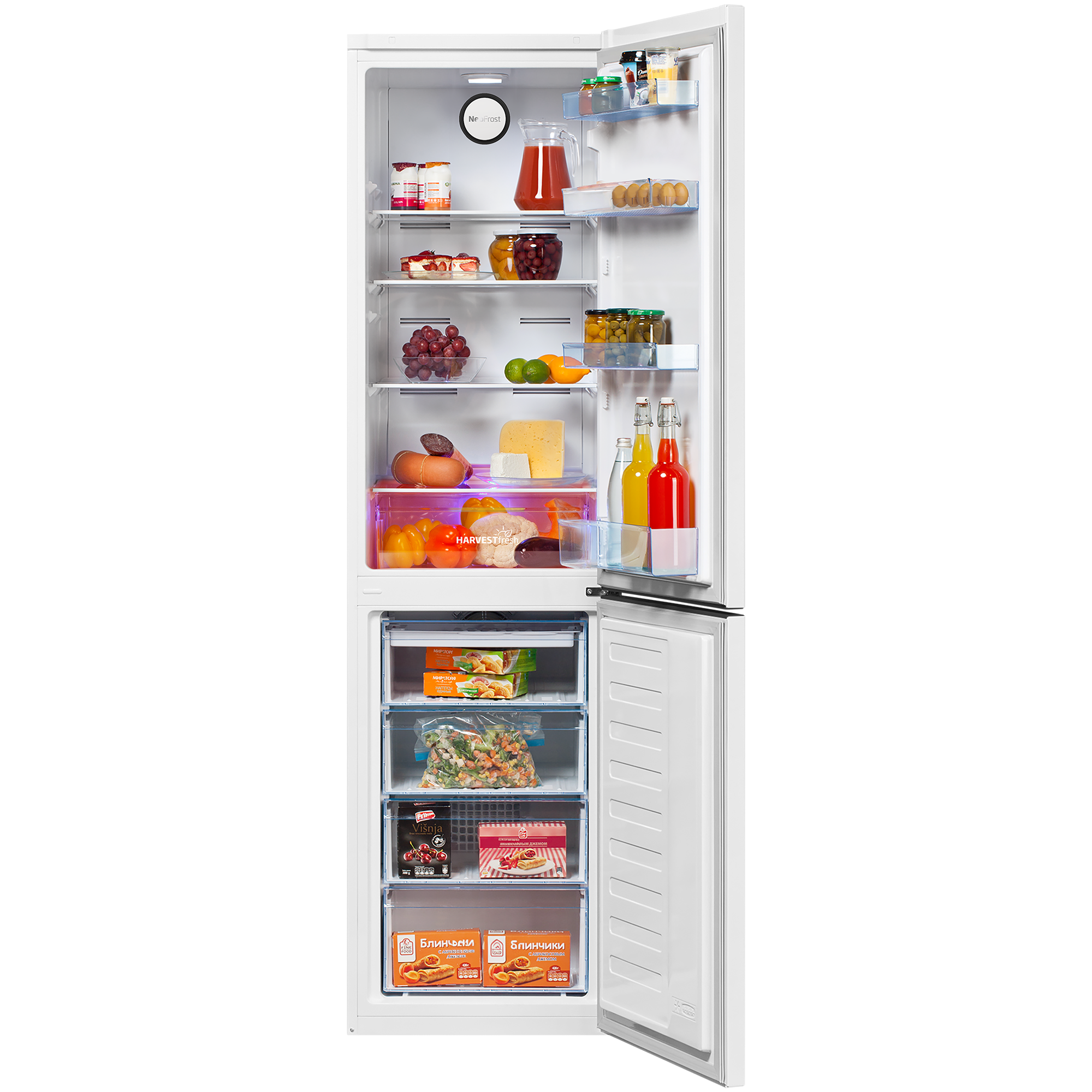 Холодильник Beko B3R0CNK332HW в классическом белом цвете поможет вам сохранить свежесть и пользу продуктов без лишних усилий. Он не нуждается в частой разморозке благодаря системе охлаждения No Frost (Без Наледи). Функции быстрой заморозки и быстрого охлаждения поддержат оптимальную температуру в камерах при большой загрузке — например, при подготовке к праздникам. А режим «Отпуск» позаботится об экономном энергопотреблении во время вашего отсутствия.
