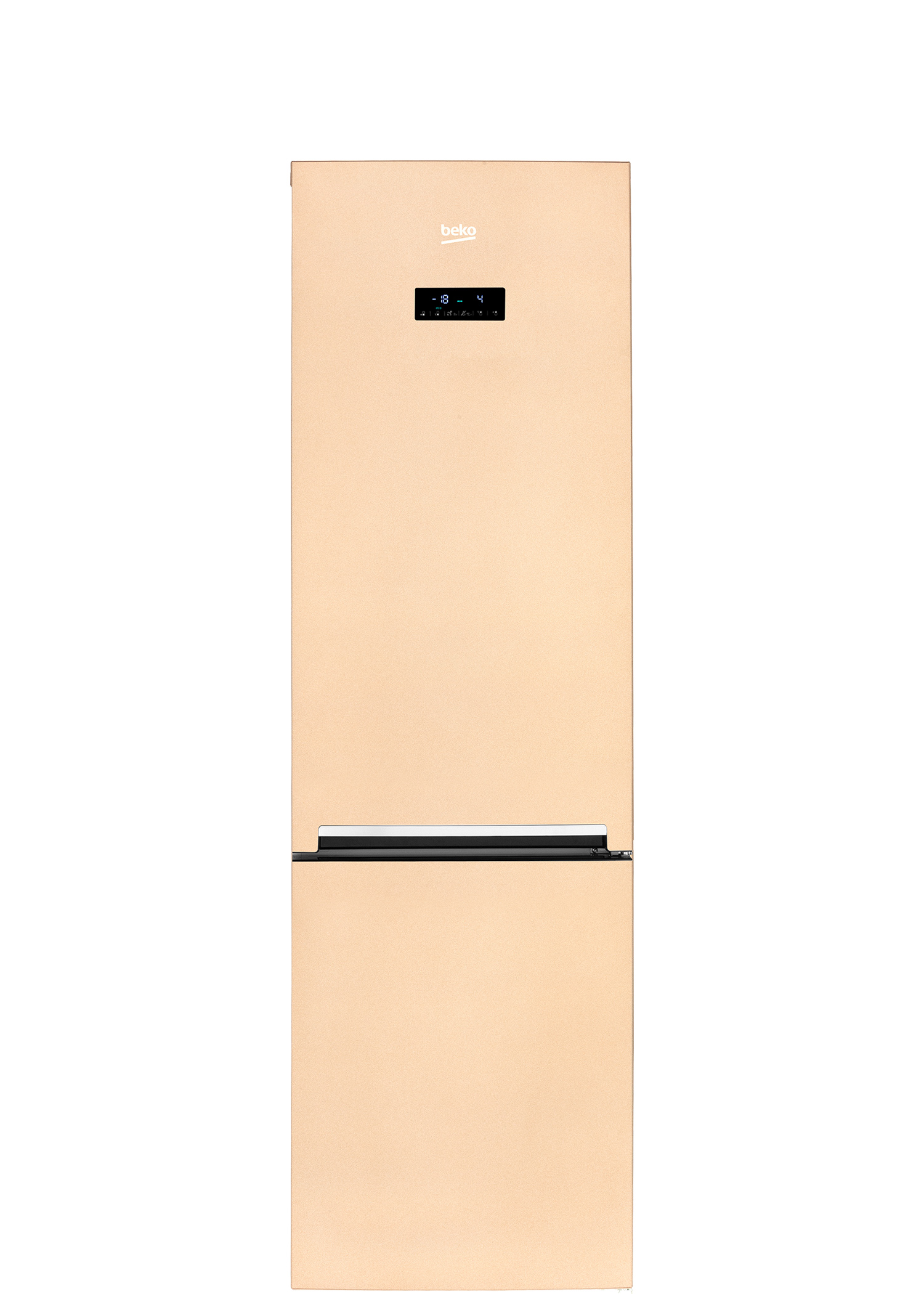 Двухкамерный холодильник бежевого цвета с нижней морозильной камерой, отсеком для фруктов и овощей с синей подсветкой Active Fresh Blue light . Двухконтурная система охлаждения NoFrost Dual Cooling (Ноу Фрост) разделяет воздушные потоки в холодильной и морозильной камерах, не допуская смешивания запахов и образования льда на стенках, поэтому холодильник не нужно размораживать. Режим «Отпуск» снижает потребление электричества за счет отключения охлаждения в холодильной камере, когда вы уезжаете на длительный срок и освобождаете холодильную камеру от продуктов.