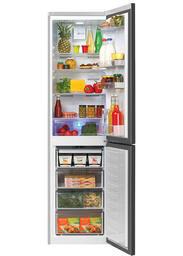 Высокий холодильник серебристого цвета оснащен нижней морозильной камерой и двухконтурной системой охлаждения NoFrost Dual Cooling. Система Ноу Фрост обеспечивает раздельное охлаждение холодильной и морозильной камер, предотвращая смешивание запахов и образование льда на стенках, поэтому холодильник не нужно регулярно размораживать. Технология Active Fresh Blue light с синей подсветкой в отсеке для фруктов и овощей продлевает процесс фотосинтеза, благодаря чему продукты дольше сохраняют свои свежесть, вкус и витамины.