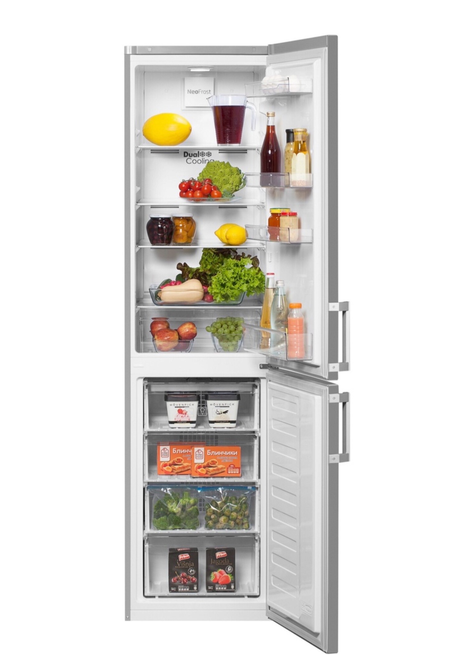 Стильный холодильник цвета нержавеющей стали с удобный сенсорным управлением, встроенным светодиодным освещением и прозрачными многофункциональными отделениями. Эффективное независимое охлаждение каждой камеры благодаря инновационной системе NoFrost Dual Cooling. Антибактериальное покрытие уплотнителя дверей для защиты от микробов и бактерий. Класс энергоэффективности А+.