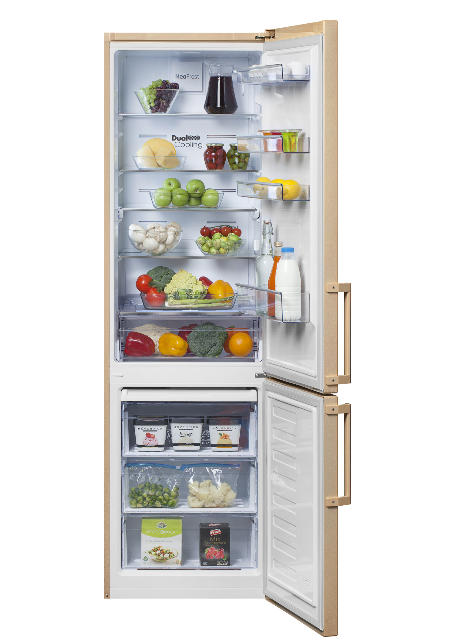 Двухкамерный вместительный холодильник Beko CNKL7356E21ZSB с электронным управлением. Оснащен удобными полками из закаленного стекла, а также подставкой для яиц. 3 ящика в морозильном отделении. Двери холодильника могут быть перенавешаны в любую удобную сторону. Система автоматического размораживания No Frost Dual Cooling предотвращает образование льда на продуктах, а также препятствует смешиванию запахов холодильного и морозильного отделений. Автономное сохранение холода до 17 ч. Цифровой дисплей с индикатором температуры.