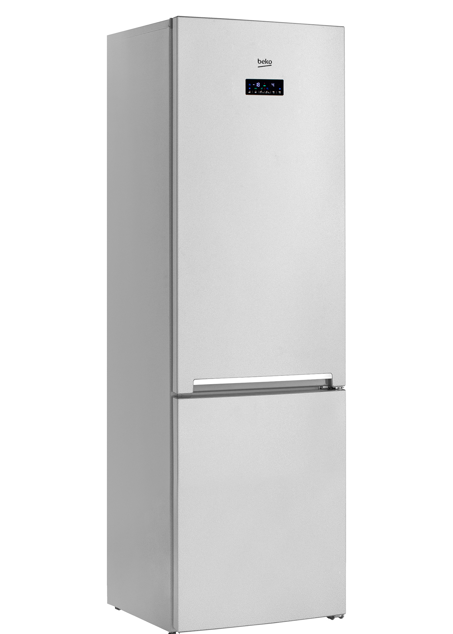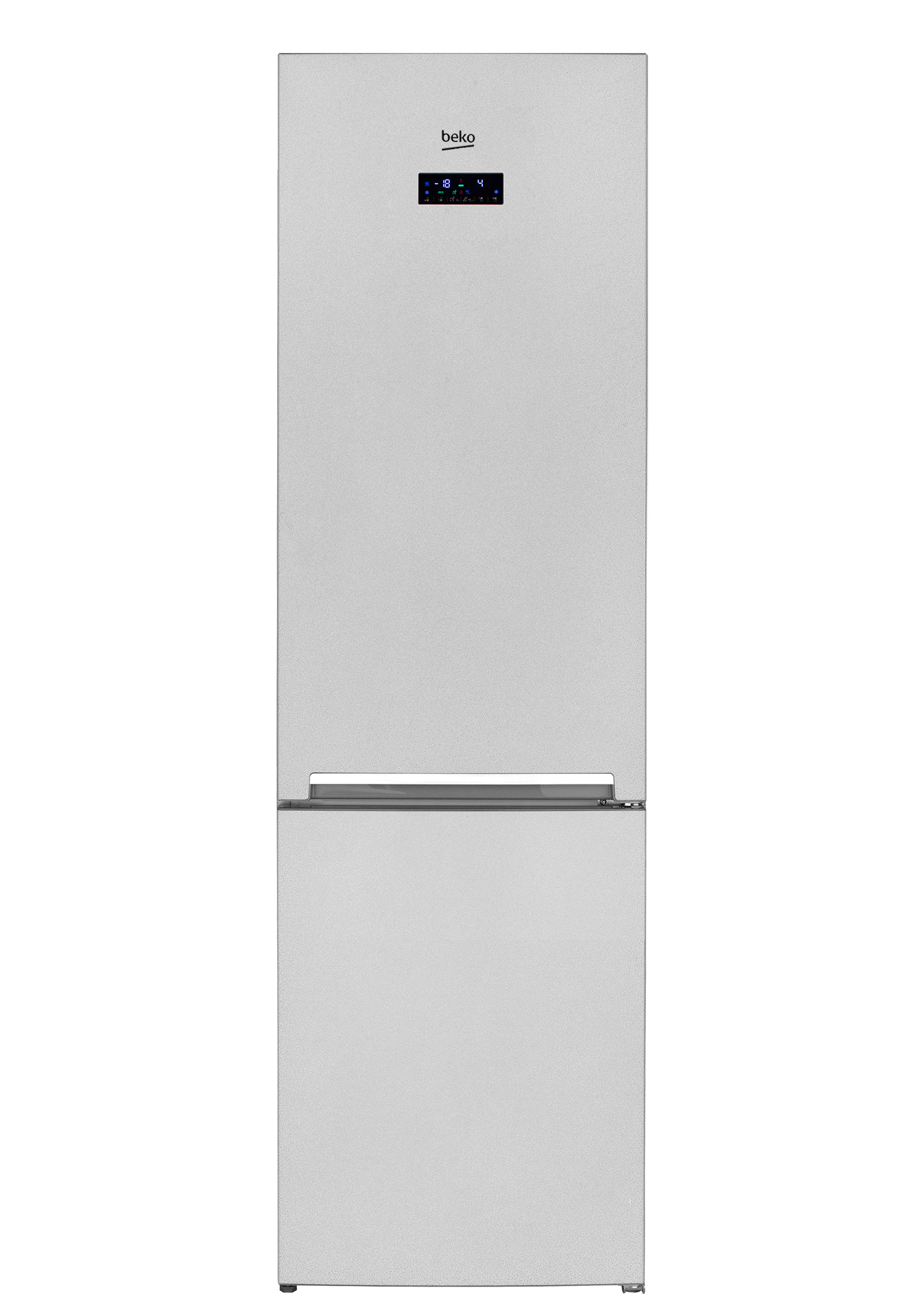 Серый двухкамерный холодильник общим объемом 400 л оснащен нижней морозильной камерой и двухконтурной системой охлаждения NoFrost Dual Cooling (Ноу Фрост), которая предотвращает образование льда на стенках и смешивание запахов. Холодильник не нужно регулярно размораживать, а дополнительный режим «Отпуск» позволяет снизить потребление электричества, если вы надолго уезжаете из дома. Специальные отсек для фруктов и овощей Everfresh и ящик с температурой 0-3 ˚С для мяса и рыбы в холодильнике Beko позволяют дольше хранить свежие продукты без заморозки.