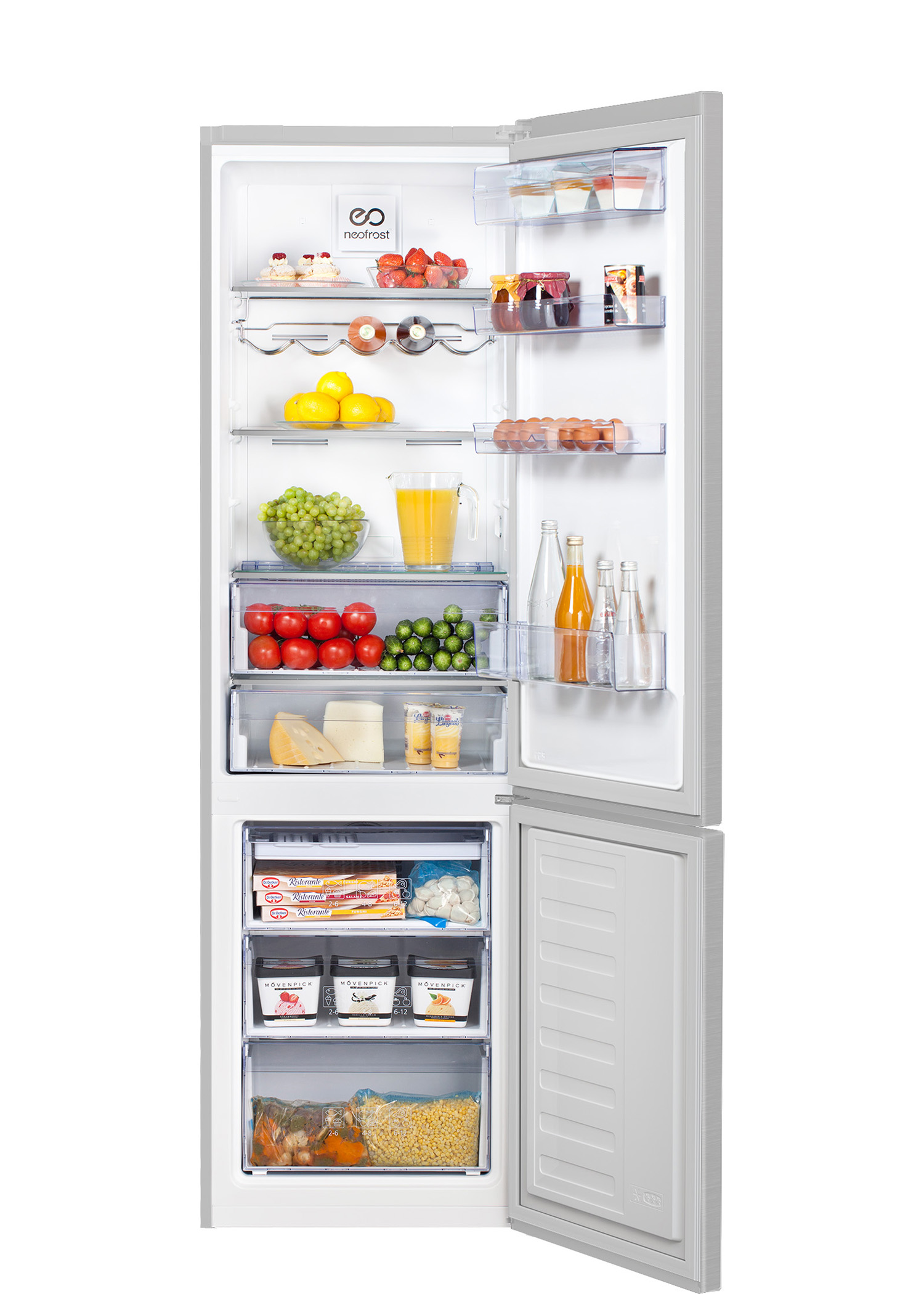 Элегантный двухкамерный холодильник оснащен нижней морозильной камерой, удобным электронным управлением и двухконтурной системой охлаждения NoFrost Dual Cooling (Ноу Фрост), которая предотвращает смешивание запахов и образование льда на стенках, поэтому устройство не нужно регулярно размораживать. Отсек для свежих фруктов и овощей Everfresh и дополнительный ящик с температурой 0-3 ˚С для мяса и рыбы позволяют дольше хранить свежие продукты в холодильнике без заморозки. Режим «Отпуск» снижает потребление холодильником электричества до минимума за счет отключения холодильной камеры, если вы надолго уезжаете из дома и освобождаете ее от продуктов.
