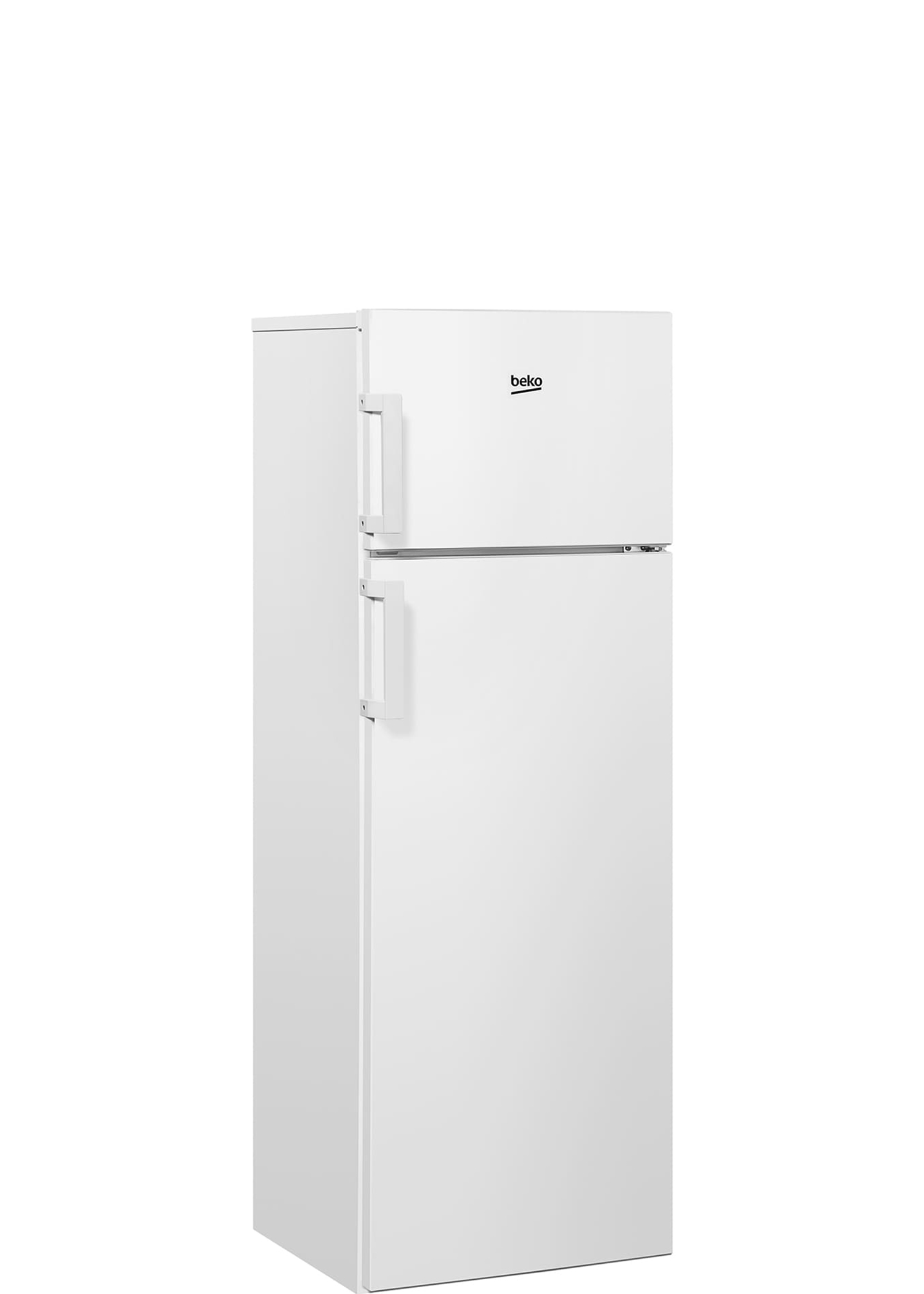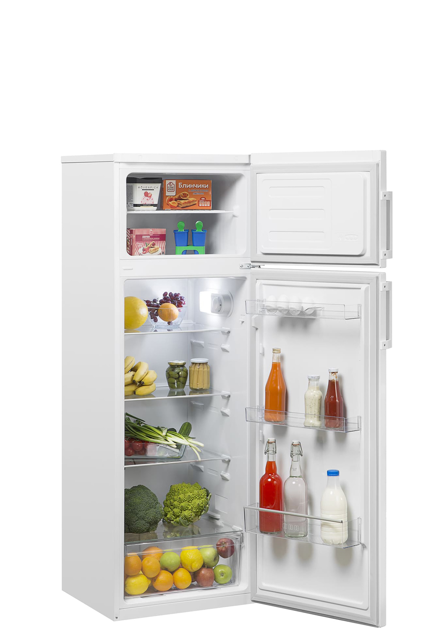 Белоснежный компактный холодильник с отсеком для свежих фруктов и овощей, тремя полками на двери и двумя – в морозильной камере. Двери имеют антибактериальные прокладки для поддержания чистоты внутри холодильника и могут быть установлены так, как вам удобно.