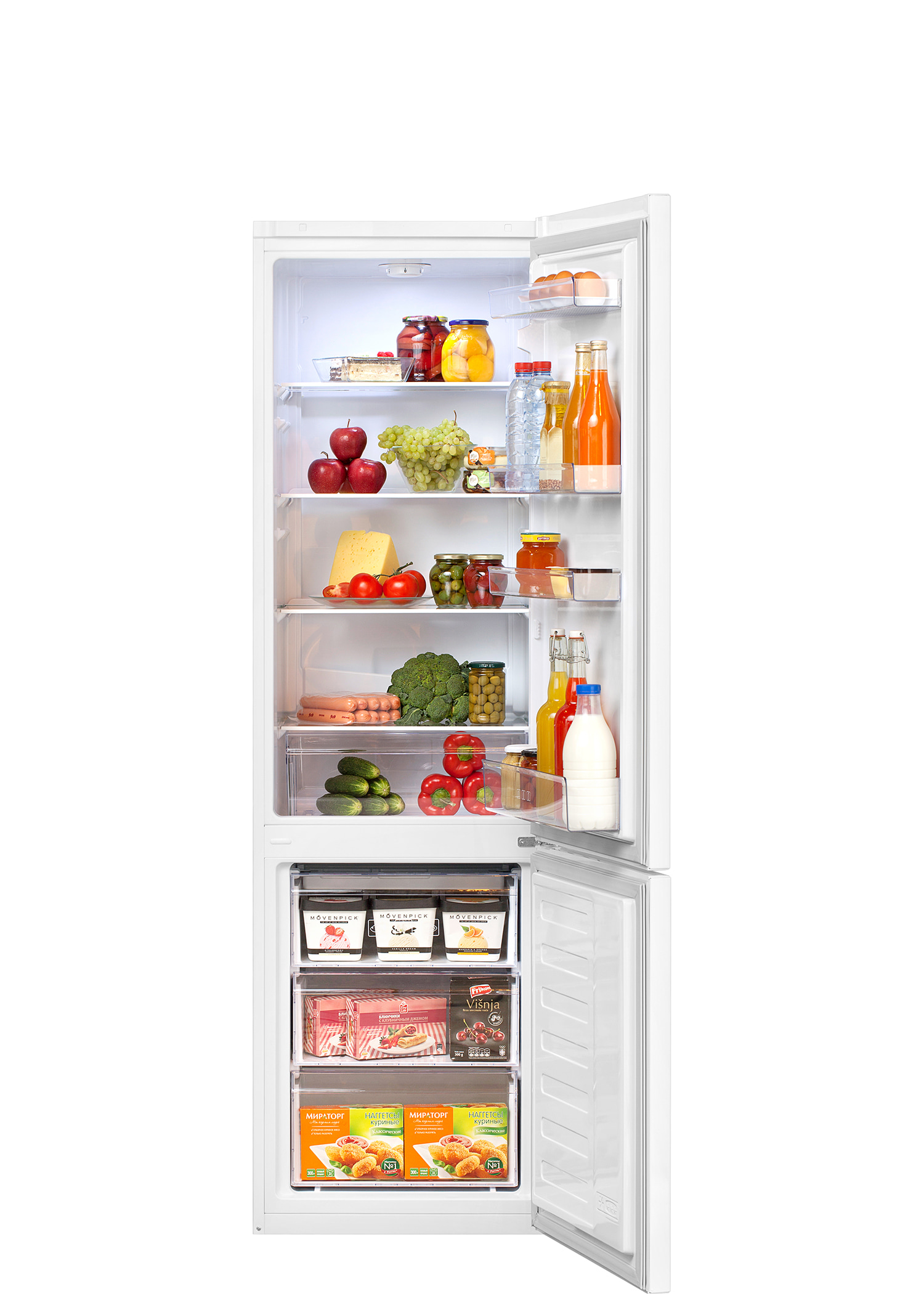 Двухкамерный холодильник с нижней морозильной камерой, статической системой охлаждения и функцией автоматической разморозки холодильного отделения. Дверцы холодильника оснащены уплотнителем с антибактериальным покрытием, которое снижает рост и распространение микробов и бактерий. Холодильнику присвоены классы энергопотребления и энергоэффективности А+.