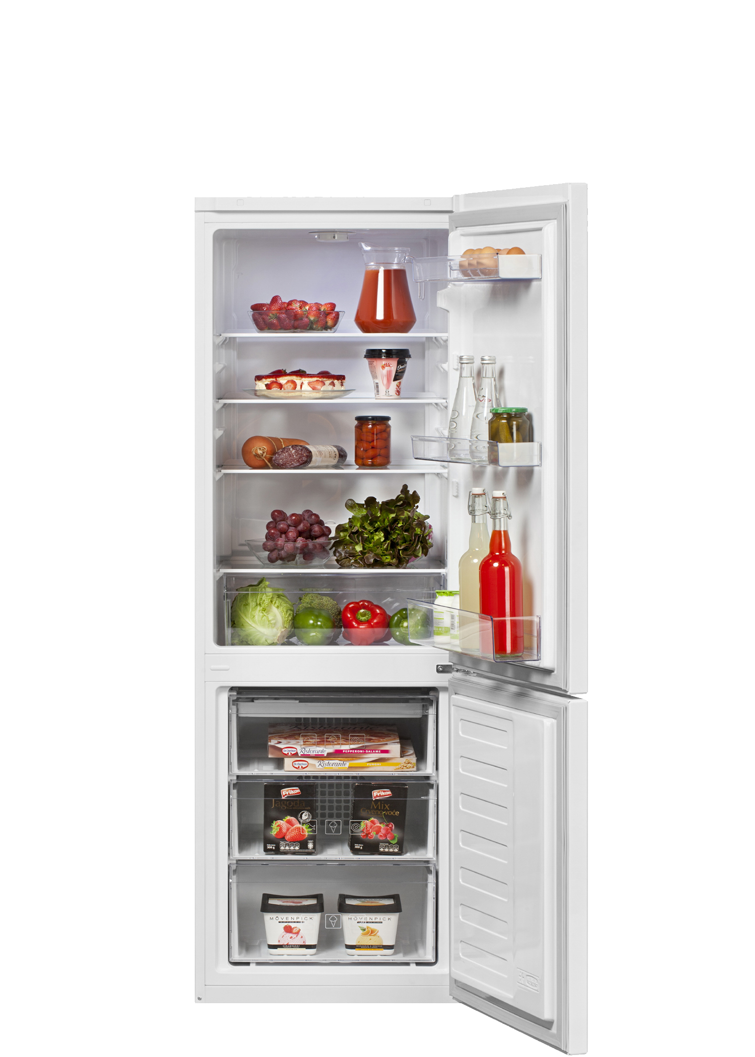 Элегантный двухкамерный холодильник белого цвета с механическим управлением, нижней морозильной камерой и статической системой охлаждения. Общий объем составляет 270 л. Полки холодильника выполнены из закаленного стекла и могут регулироваться по высоте. Холодильник имеет класс энергоэффективности А и удобные перенавешиваемые двери с антибактериальным уплотнителем, который предотвращает появление и рост бактерий.