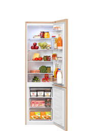 Элегантный двухкамерный холодильник бежевого цвета с нижней морозильной камерой и общим объемом 310 л. Холодильник оснащен статической системой охлаждения и механическим управлением. Холодильная камера оборудована 4 стеклянными полками и отсеком для свежих фруктов и овощей, а морозильная – 3 вместительными прозрачными ящиками для хранения замороженных продуктов. Холодильнику присвоен класс энергоэффективности А+.