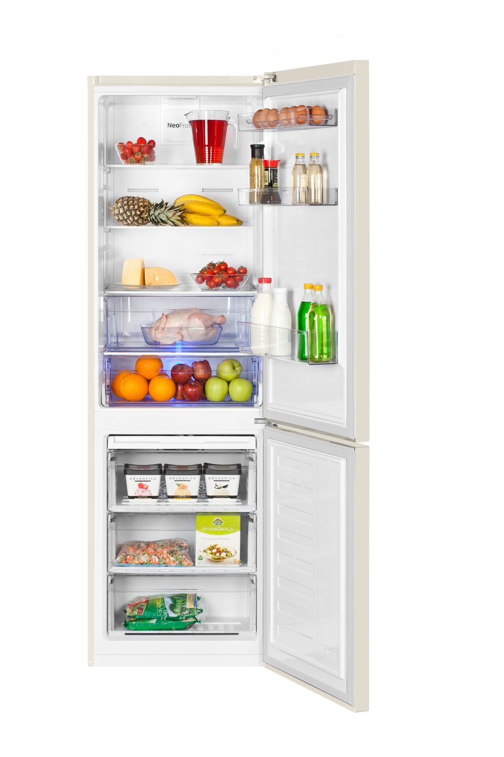 Холодильник класса энергоэффективности А+ с системой охлаждения NoFrost Dual Cooling, функцией дополнительного энергосбережения Eco-Fuzzy, синей подсветкой Fresh Blue Light и системой автоматической разморозки No Frost. Дополнительная камера с нулевой температурой позволяет дольше хранить свежие мясо и рыбу.