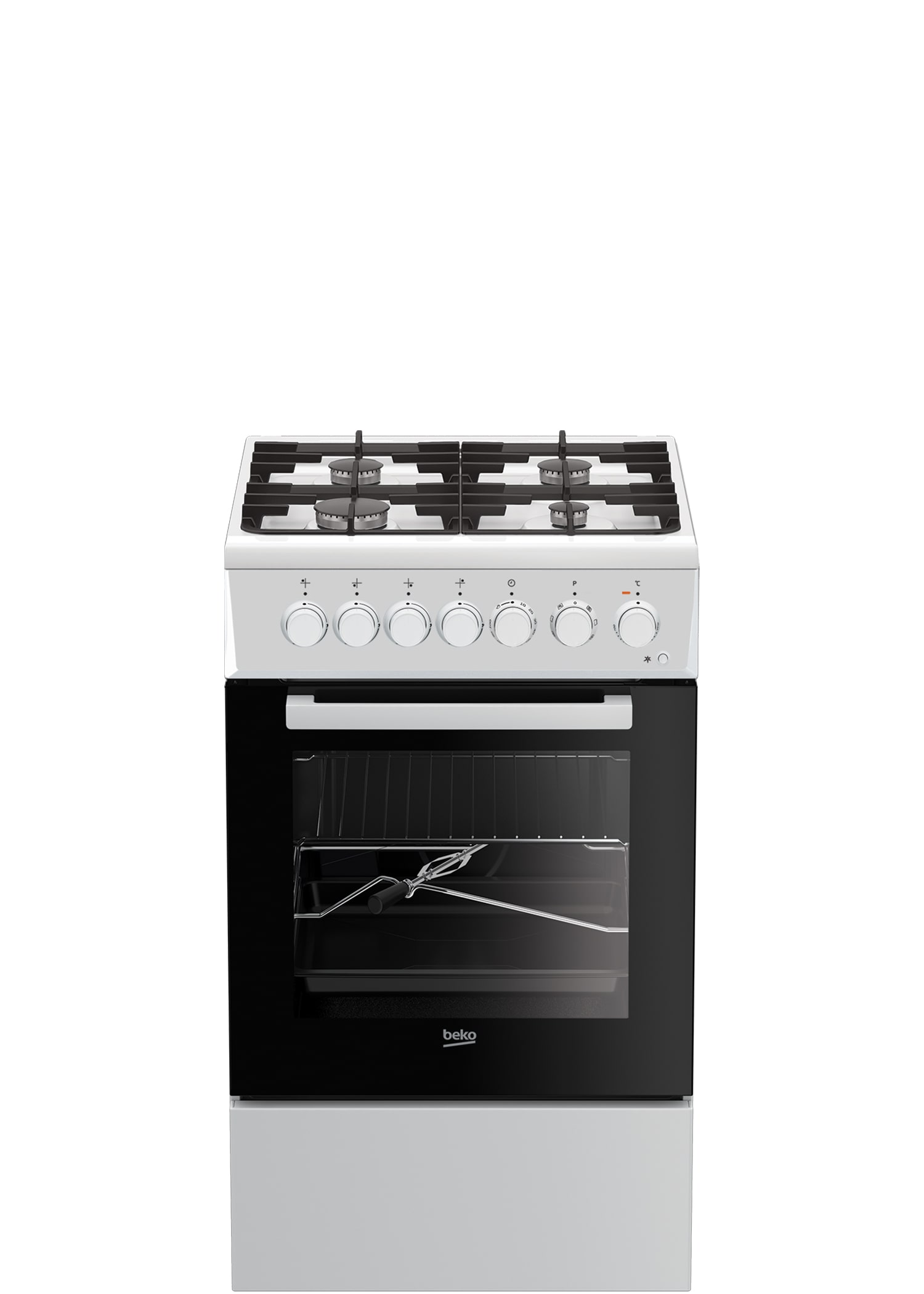 Комбинированная плита с газовой варочной поверхностью и электрическим духовым шкафом. Газовые конфорки оснащены электроподжигом с помощью кнопки. Духовка объемом 55 л имеет несколько режимов работы, включая конвекцию, гриль и быстрый разогрев. Внутреннее эмалированное покрытие облегчает очистку духовки после каждого приготовления. Плита имеет ширину 50 см и класс энергопотребления А. Внизу плиты расположен выдвижной ящик для хранения посуды.