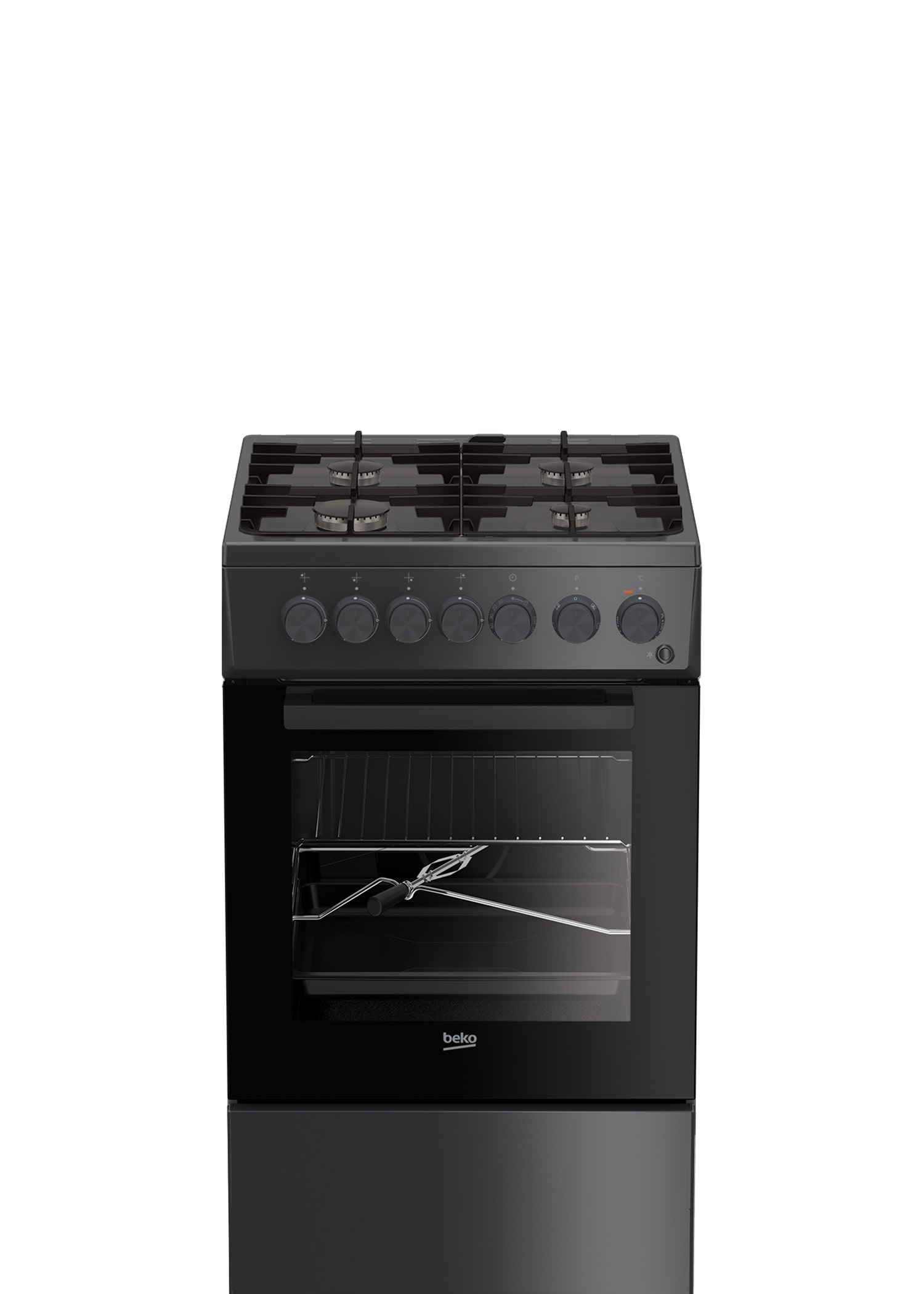 Комбинированная плита цвета антрацит шириной 50 см оснащена 4 газовыми конфорками, съемными чугунными решетками и автоматическим электроподжигом. Электрический духовой шкаф объемом 55 л предлагает 6 режимов работы, включая конвекцию, гриль и быстрый разогрев, и имеет внутреннее эмалированное покрытие, которое легко чистится после каждого использования. Плита оснащена удобным механическим таймером с автоматическим отключением и ящиком для хранения посуды.