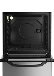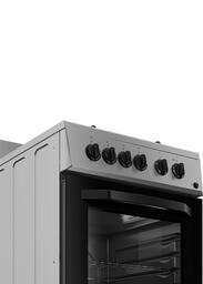 Плита комбинированного типа шириной 50 см и класса энергопотребления А. Плита оснащена 4 газовыми конфорками с электроподжигом и статической электрической духовкой с 4 режимами работы и плавным термостатом. Духовой шкаф объемом 60 л имеет внутреннее эмалированное покрытие и стеклянную дверцу. В комплект с плитой входят дополнительный набор форсунок, решетка и эмалированный противень.