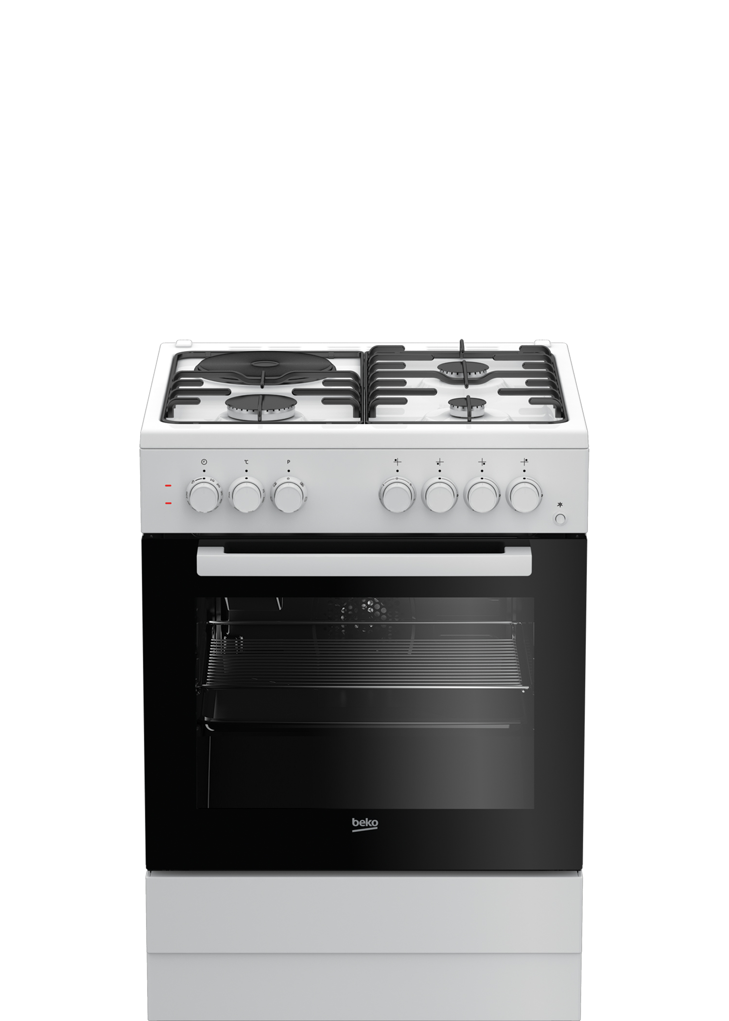 Комбинированная плита с 3 газовыми и 1 электрической конфорками и электрическим духовым шкафом. Газовые конфорки оснащены автоматическим электроподжигом и газ-контролем, который предотвращает утечку газа, если пламя случайно погаснет. Духовка объемом 66 л предлагает несколько режимов работы, включая быстрый разогрев, конвекцию и гриль. Специальное эмалированное покрытие облегчает уход за духовкой после приготовления блюд. Плита имеет класс энергопотребления А.