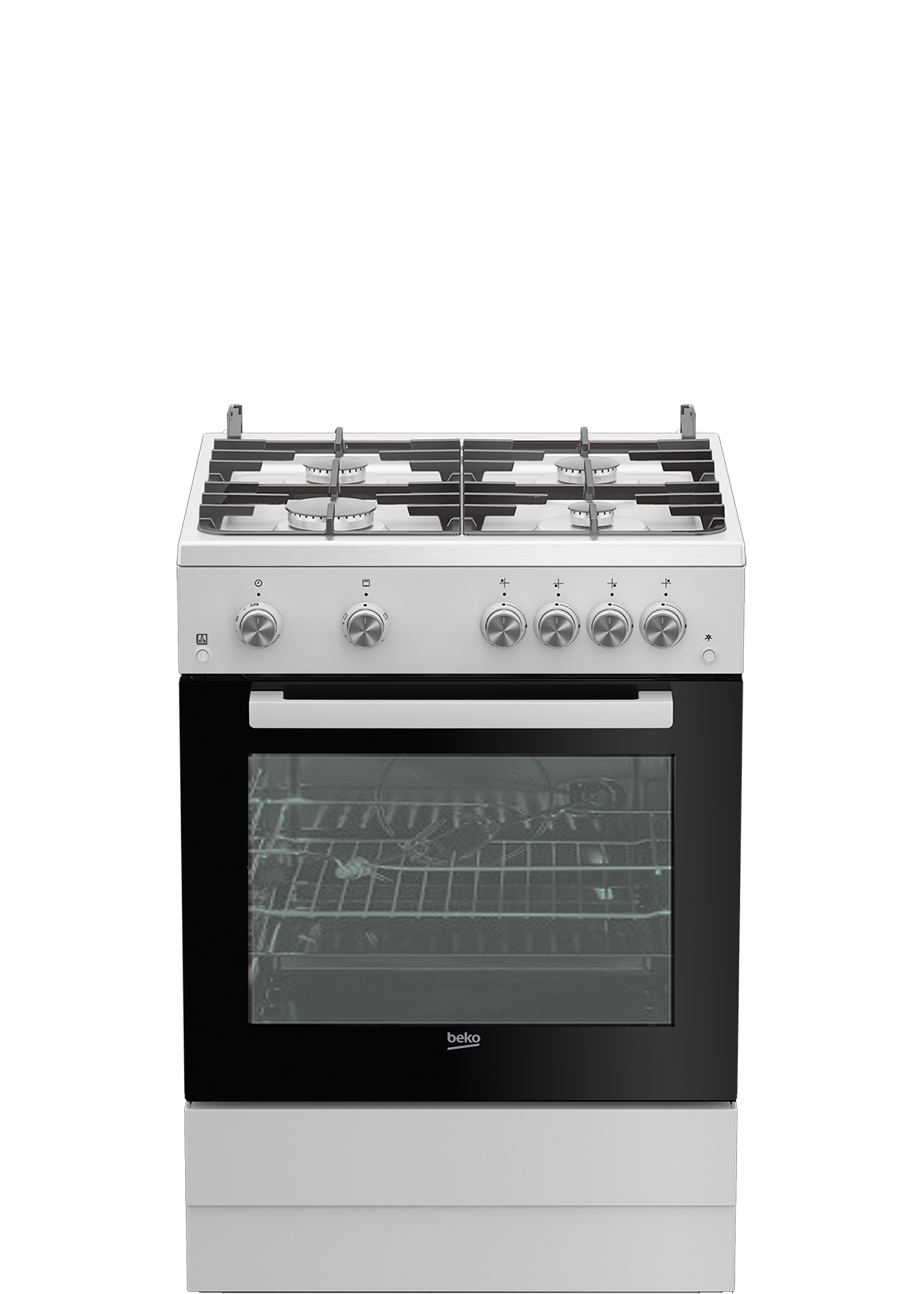 Отдельностоящая газовая плита Beko с четырьмя конфорками и надежными чугунными решетками. В ручки плиты встроен автоматический электроподжиг газовых конфорок. Газовый духовой шкаф объемом 55 л имеет гриль, функцию очистки паром, а в комплектацию входят вертел, стандартный эмалированный противень и решетка. Духовой шкаф оснащен системой газ-контроля, которая защищает от утечки газа.