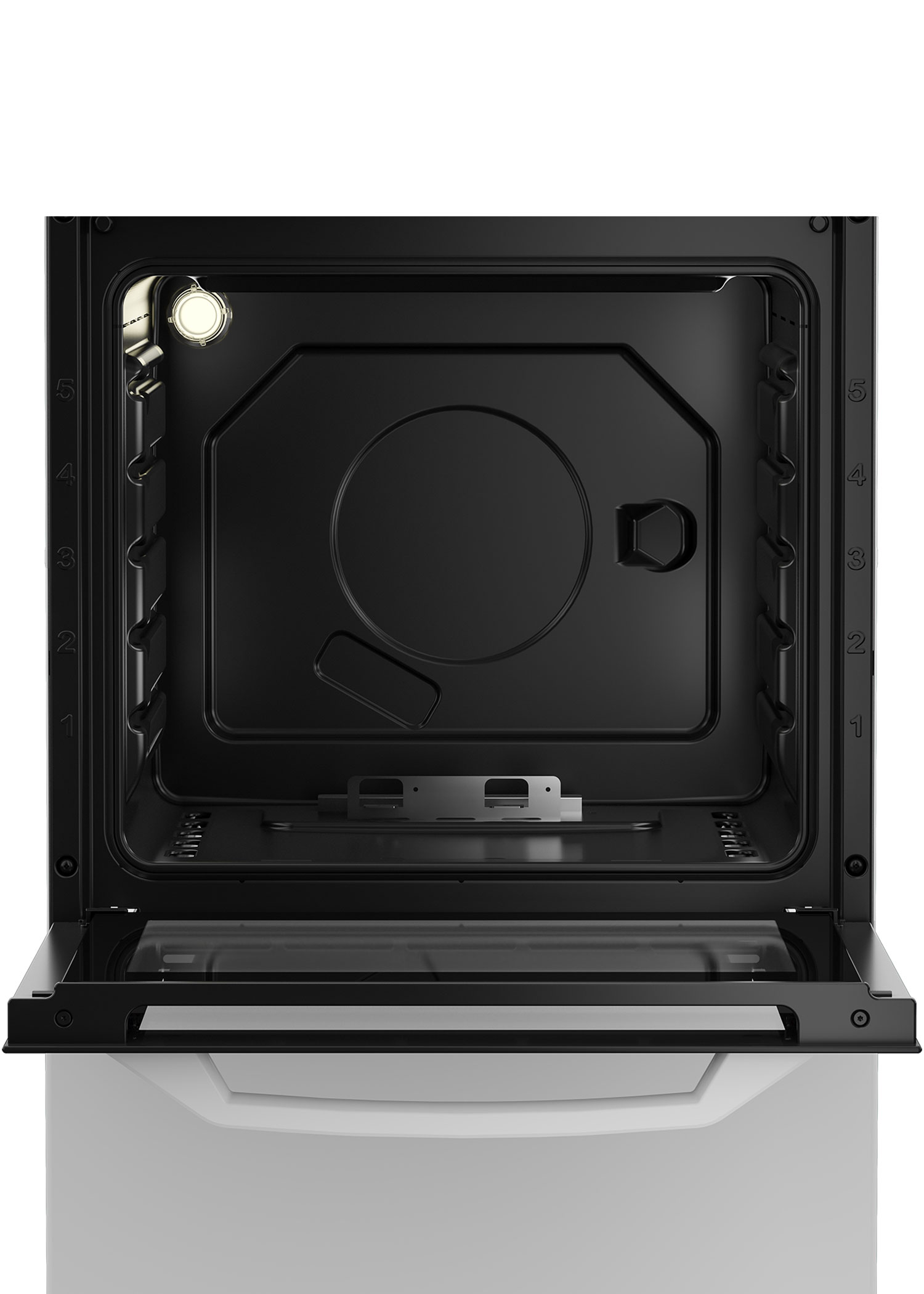 Газовая плита шириной 50 см с четырьмя конфорками разного диаметра, встроенной духовкой и электроподжигом с помощью кнопки. Плита имеет эмалированные решетки, которые выдерживают тяжелую посуду. Газовая духовка имеет функцию газ-контроля и удобную подсветку. Стеклянную дверцу и внутреннее эмалированное покрытие духовки легко чистить после каждого приготовления.