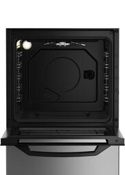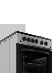 Стильная газовая плита серебристого цвета и шириной 50 см. Варочная поверхность оснащена 4 конфорками разного диаметра с электроподжигом и чугунными решетками, которые снимаются для удобной очистки плиты. Газовый духовой шкаф объемом 55 л имеет удобный термостат, несколько режимов работы, включая гриль, и газ-контроль для повышенной безопасности – подача газа автоматически прекращается, если пламя случайно потухнет. Плита также оснащена механическим таймером со звуковым сигналом и ящиком для хранения посуды.