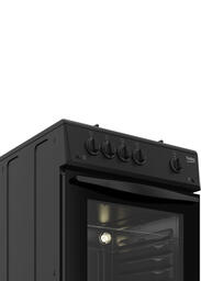 Элегантная черная газовая плита с простым управлением для стильной кухни. Плита имеет ширину 50 см и электроподжиг конфорок и духового шкафа. Варочная панель с 4 конфорками разного диаметра подходит для посуды любого размера, а эмалированные решетки легко снимаются для удобной очистки плиты. Духовка объемом 56 л имеет удобный термостат и оснащена газ-контролем, который предотвращает утечку газа, если пламя случайно потухнет. Температура внутри духовки может достигать 300 °С.