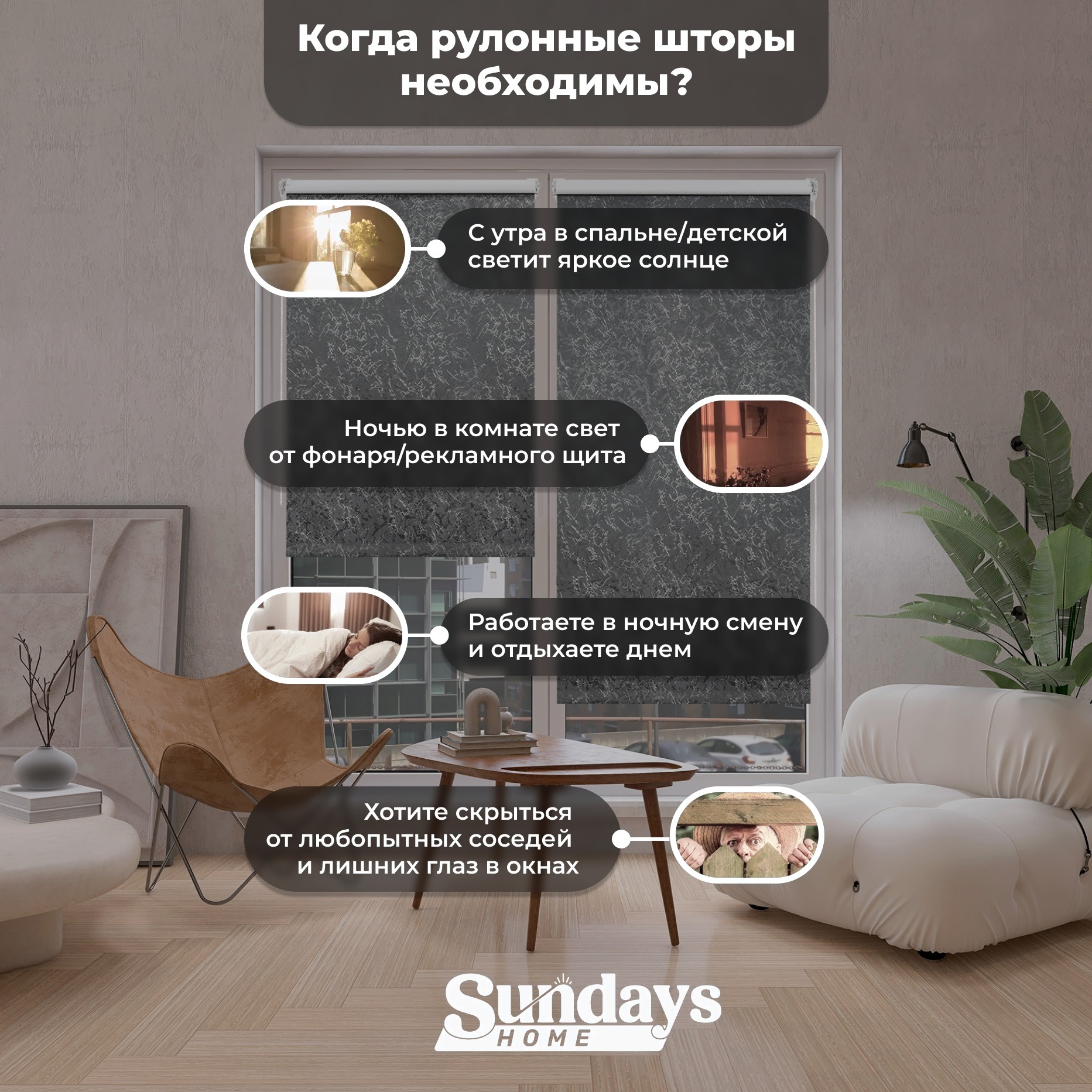 • Тип шторы Blackout (100% затемнение)
