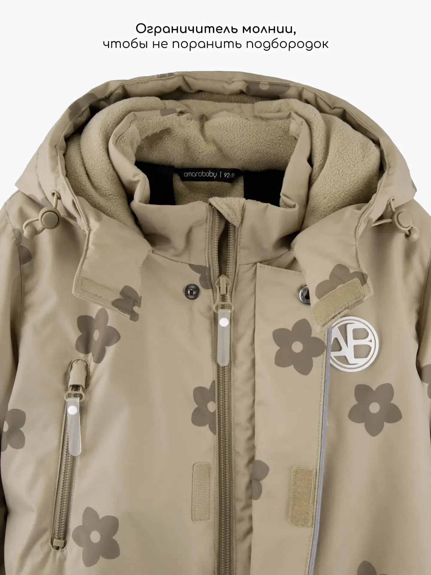 • Материал подкладки флис (на груди, спине, капюшоне)
