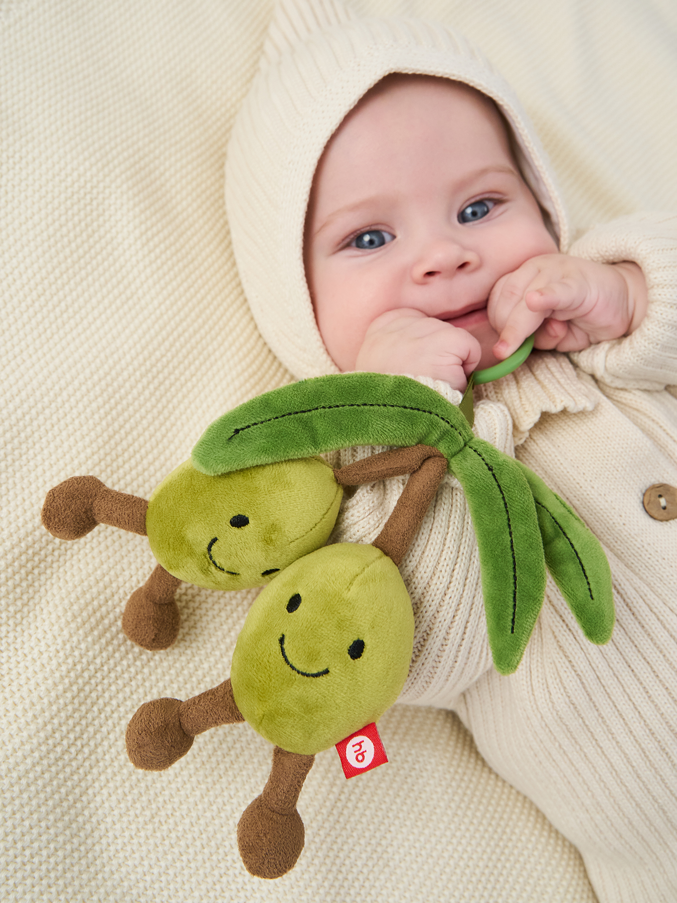 Подвесная игрушка в виде оливок подарит малышу массу впечатлений во время игры. Шуршащие элементы и интересная форма побуждают к активному взаимодействию, развивая слух и мелкую моторику. Легкость крепления на кроватку или коляску делает её удобной для использования в любых условиях. Игрушка сочетает в себе яркость и простоту, что помогает малышу концентрировать внимание на новых звуках и текстурах. Идеально подойдет для игр как дома, так и на прогулке.