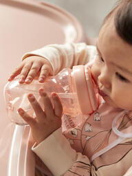 Удобный поильник-непроливайка с силиконовой трубочкой подходит для малышей с 9 месяцев. Крышка поильника легким вращением убирает трубочку внутрь, предохраняя ее от загрязнений, а также надежно защищая содержимое бутылочки от протекания. Поильник имеет большой объём, чтобы напитка хватало малышу надолго.