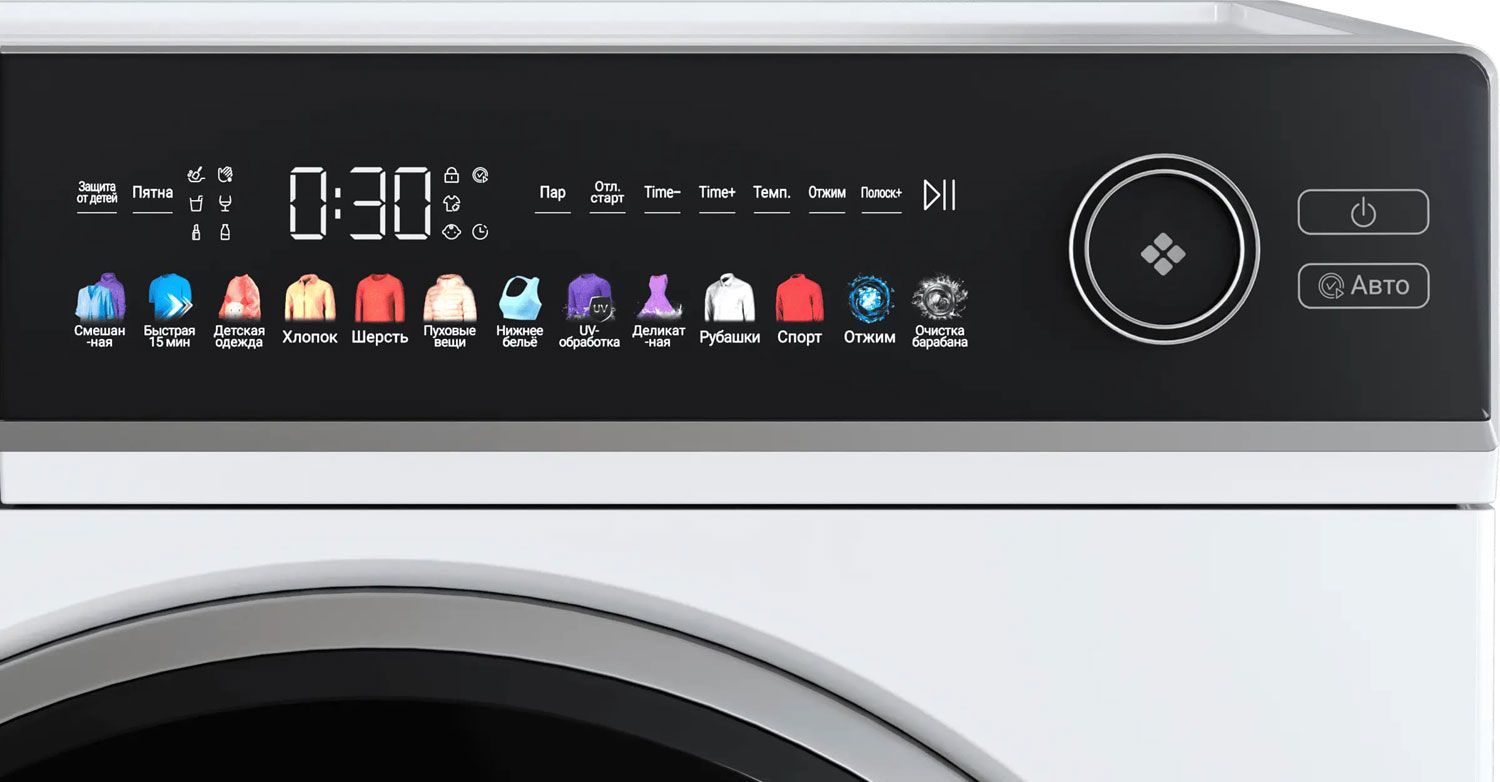 • Программы стирки Быстрая стирка,Стирка изделий из хлопка,Стирка изделий из шерсти,Стирка деликатных тканей,Стирка смешанных тканей,Стирка детской одежды,Стирка спортивной одежды,Стирка рубашек,Стирка пуховых вещей,Полоскание