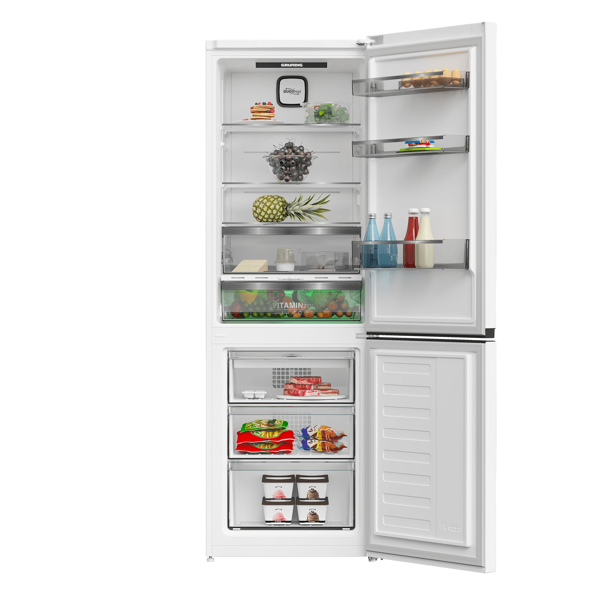 Отдельностоящий холодильник белого цвета с двумя независимыми системами охлаждения Duo-Cooling No Frost в морозильной и холодильной камерах. Холодильник не требует разморозки, а технология Duo-Cooling формирует два контура охлаждения, исключая попадание запахов из одной камеры в другую. Сенсорная панель на дверце позволяет быстро установить нужный режим работы. Отсек с температурой 0-3˚C создает комфортные условия для хранения свежих молочных продуктов, мяса и рыбы. Инновационная технология трёх цветов VitaminZone в ящике для овощей и фруктов имитирует природный цикл солнечного света, что позволяет сохранять все полезные вещества и вкус свежих продуктов.