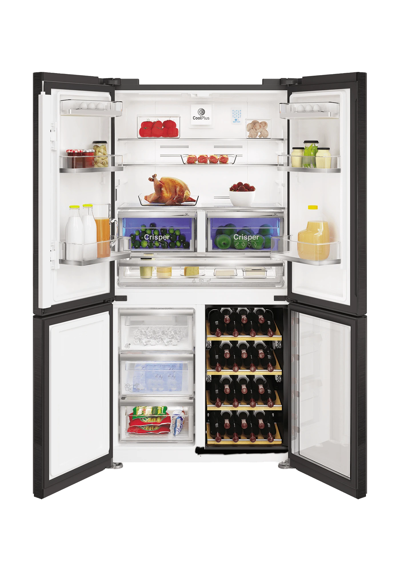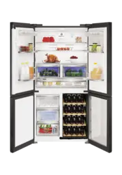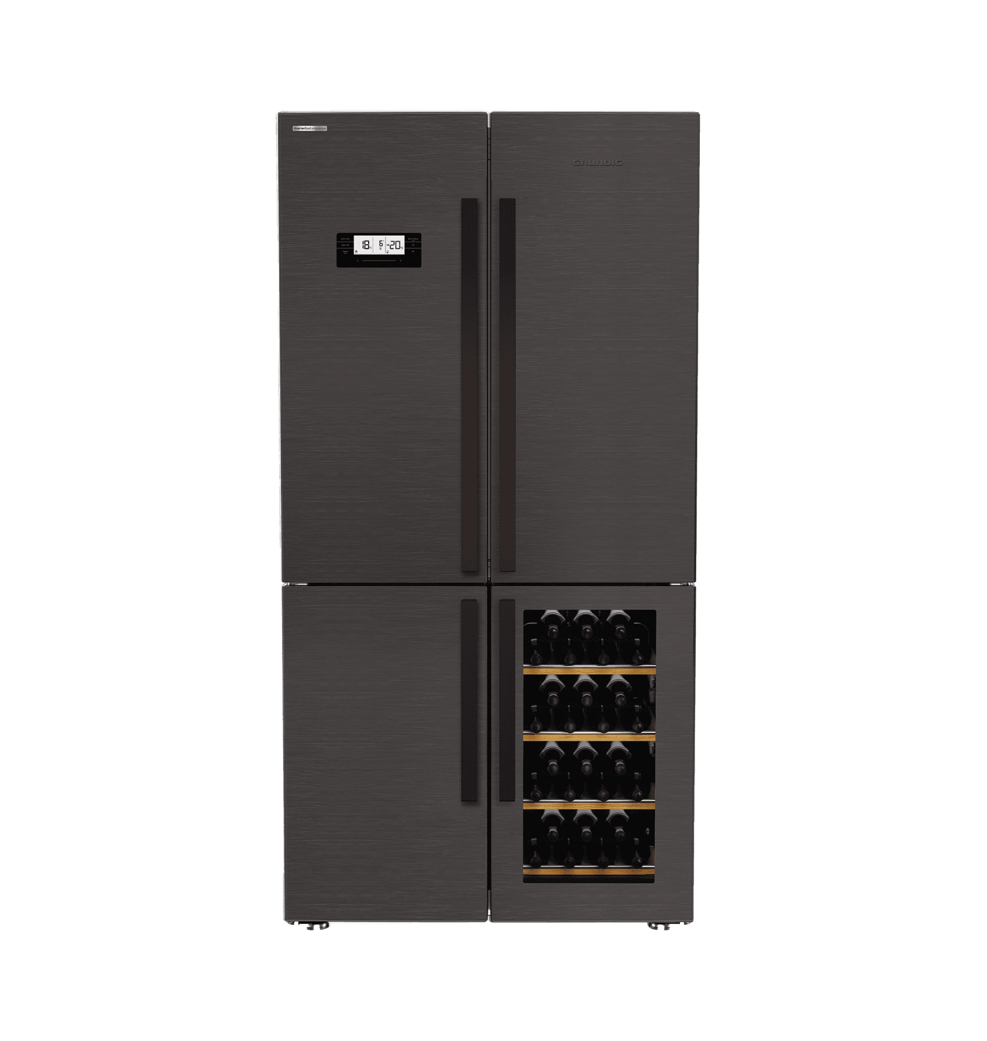Вместительный четырехдверный холодильник с нижней морозильной камерой и системой двухконтурного охлаждения Total No Frost (Ноу Фрост) оснащен долговечным и тихим инверторным компрессором. В нижней части холодильника расположен винный шкаф для хранения вина при оптимальной температуре. Специальный ящик с синей подсветкой позволяет дольше сохранять фрукты и овощи свежими и полезными. Отсек с температурой 0-3 ˚C в холодильнике Grundig позволяет дольше хранить свежие продукты, сохраняя их вкус и пользу.