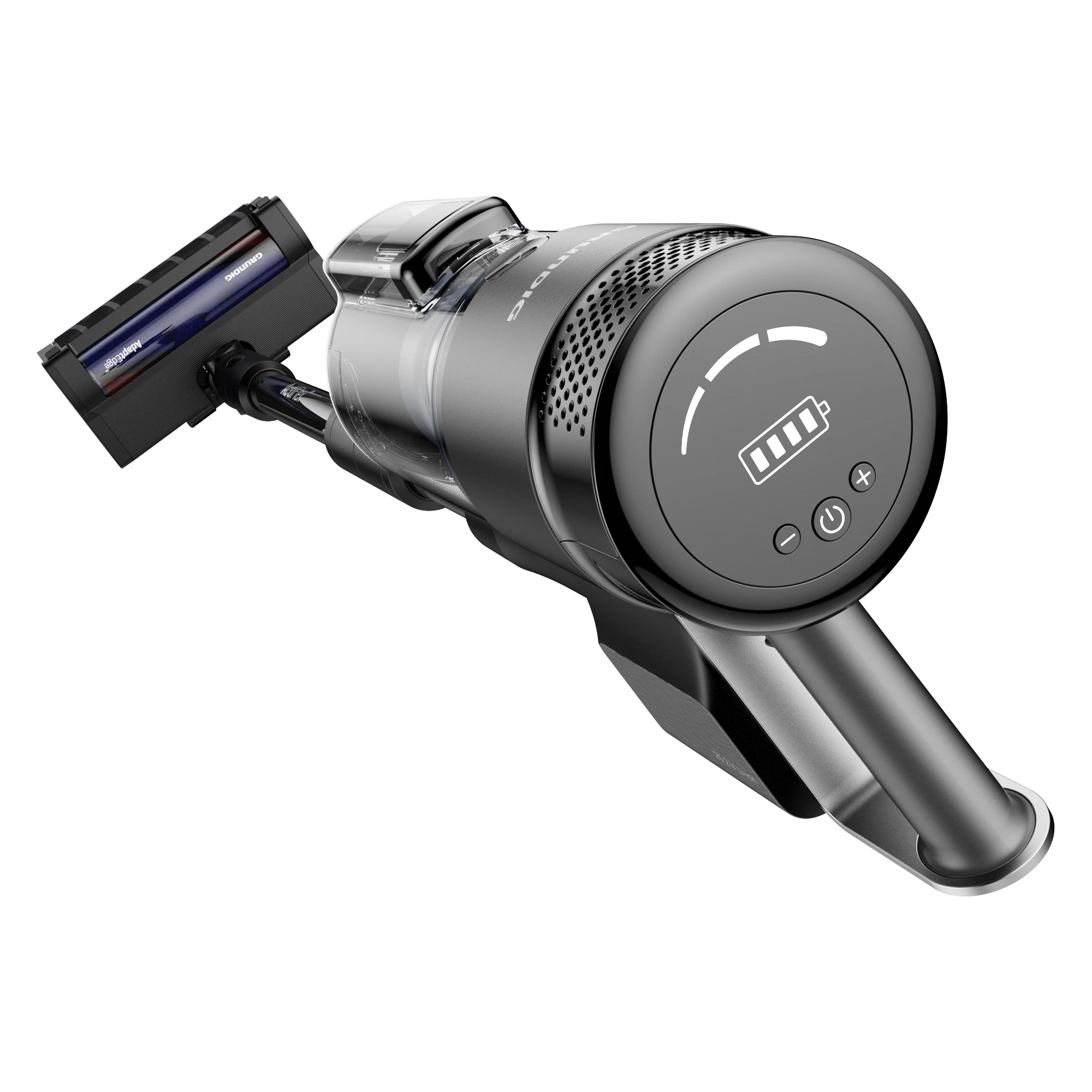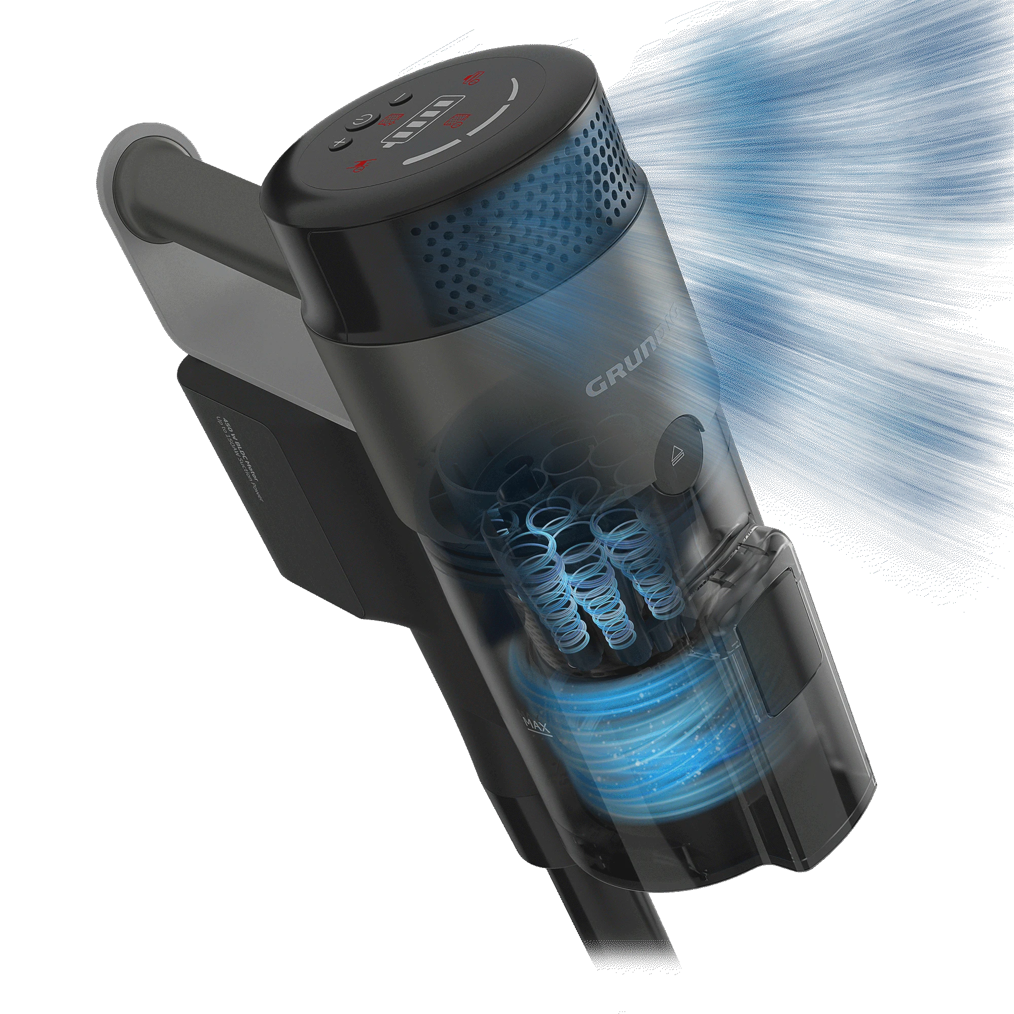 Вертикальный пылесос Grundig VCP 9431 PRO сочетает эффективность и эргономичный дизайн. Оснащен двигателем с мощностью всасывания до 150 Вт и тремя режимами работы. Литий-ионный аккумулятор обеспечивает до 60 минут автономной работы, полная зарядка занимает 3–4 часа. Для удобства уборки в труднодоступных местах предусмотрен гибкий корпус и яркая LED-подсветка. Вертикальная парковка и стильная док-станция помогают компактно разместить устройство. В комплект включены насадка для щелей, комбинированная насадка 2 в 1, щетка для мебели и насадка для влажной уборки.