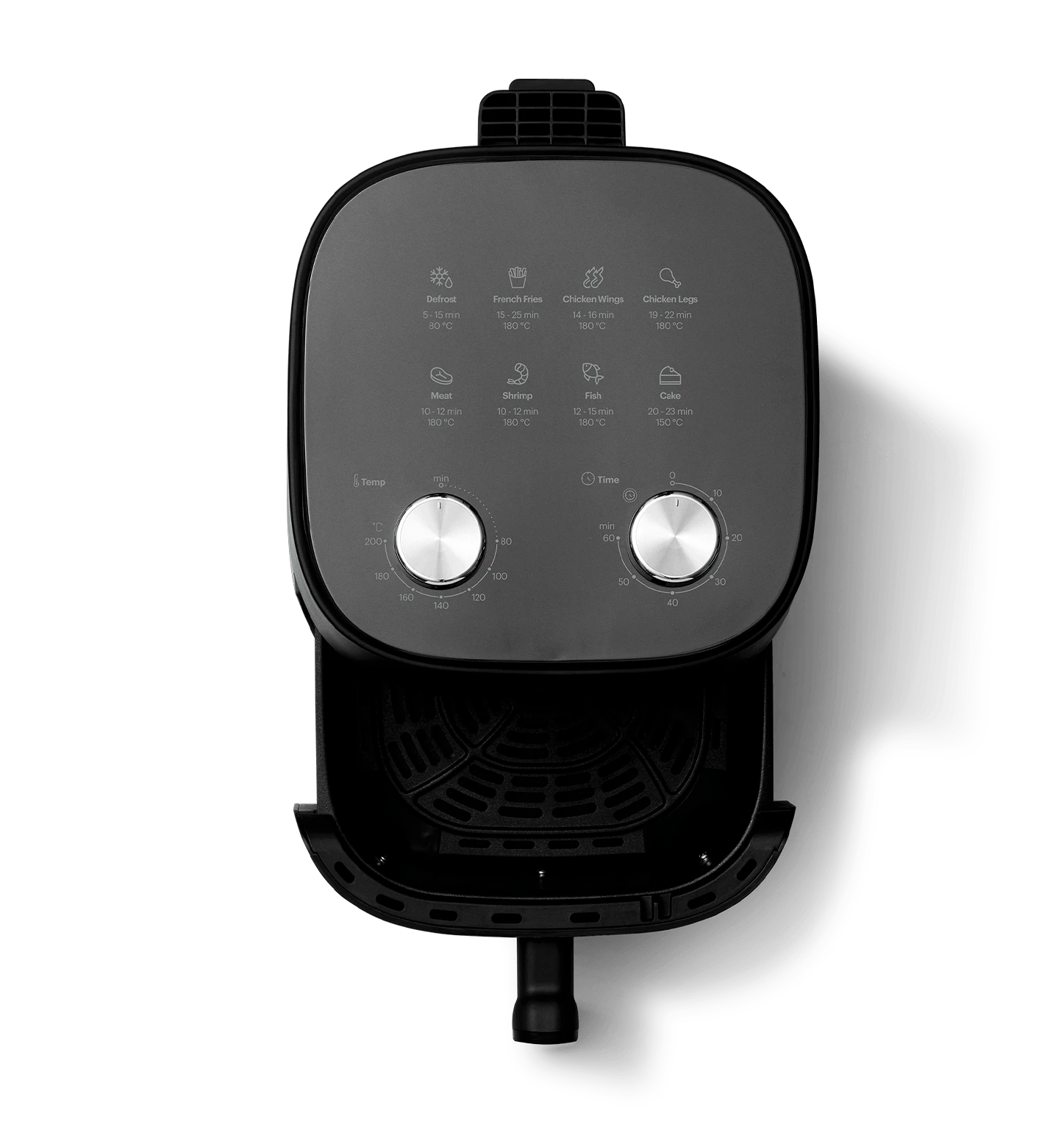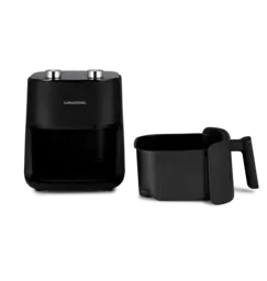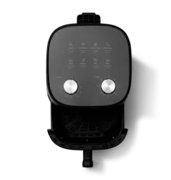 Благодаря высокой мощности 1500 Вт и вместительной чаше объемом 4,7 литра аэрогриль обеспечивает быстрое и равномерное приготовление любых блюд – от сочного стейка до картофеля фри.