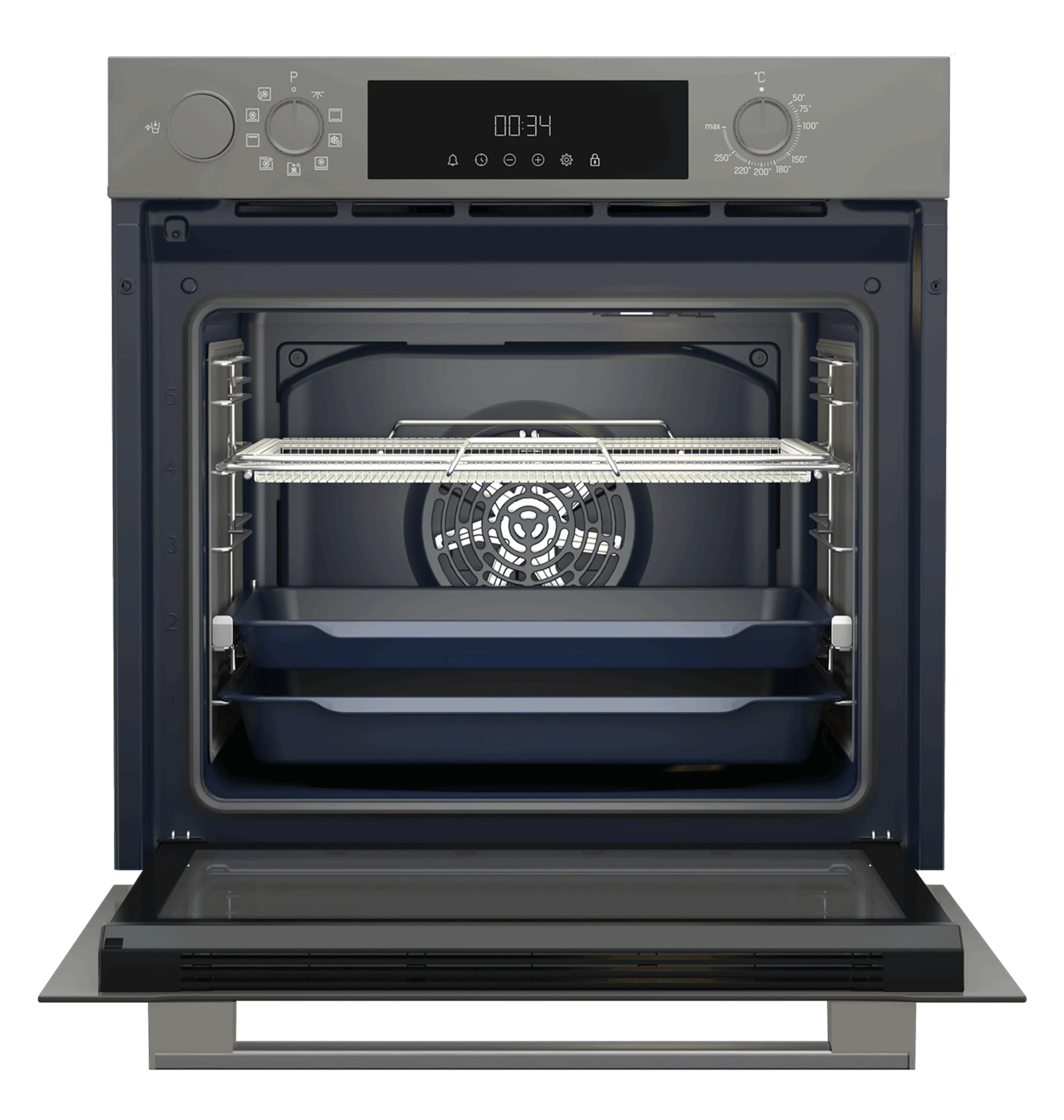 Духовой шкаф Grundig GEBM12300GSA — многофункциональная модель для эффективного и комфортного приготовления ваших любимых блюд. Духовой шкаф оснащен технологией Steam Assist*, которая позволяет готовить блюда на пару, сохраняя их сочность, аромат и пользу. Процесс приготовления становится еще удобнее благодаря телескопическим направляющим, обеспечивающим легкий доступ к блюдам без риска ожогов. Механизм плавного закрытия дверцы предотвращает резкие удары и обеспечивает бесшумность. В духовке предусмотрено 9 режимов приготовления, включая технологию AirFry* — возможность интенсивного запекания с хрустящей корочкой без использования большого количества масла.