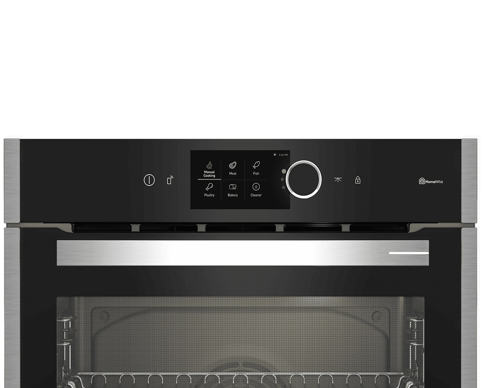 Мультифункциональный духовой шкаф с сенсорным TFT дисплеем и удобными поворотными переключателями предлагает 13 режимов для приготовления блюд, включая разморозку, гриль, поддержание тепла и конвекцию. Технология HotAeroPro не даст краям ваших блюд подгореть, обеспечивая идеально равномерное пропекание. Детали духового шкафа выполнены из переработанных рыболовных сетей, с заботой об окружающей среде. Управлять техникой можно удаленно, используя специальное приложение HomeWhiz.