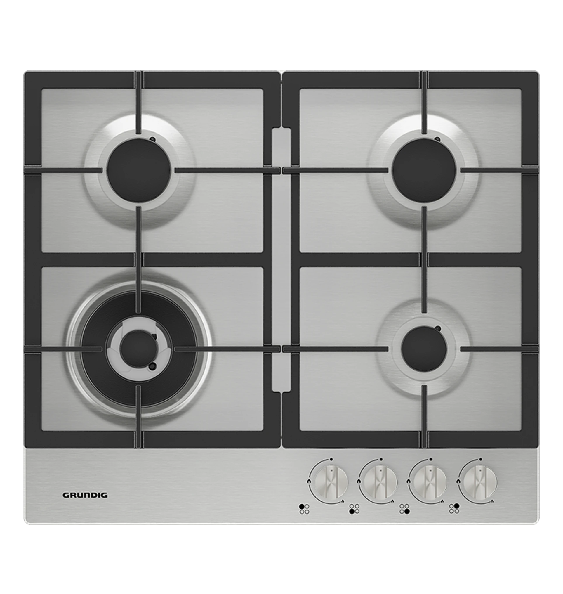 Встраиваемая варочная поверхность с 4 газовыми конфорками разной мощности. Варочная панель оснащена надежными и устойчивыми чугунными решетками и механическим управлением. В ручки газовой поверхности встроен автоматический электроподжиг конфорок, а сама панель защищена от утечки газа системой газ-контроля.