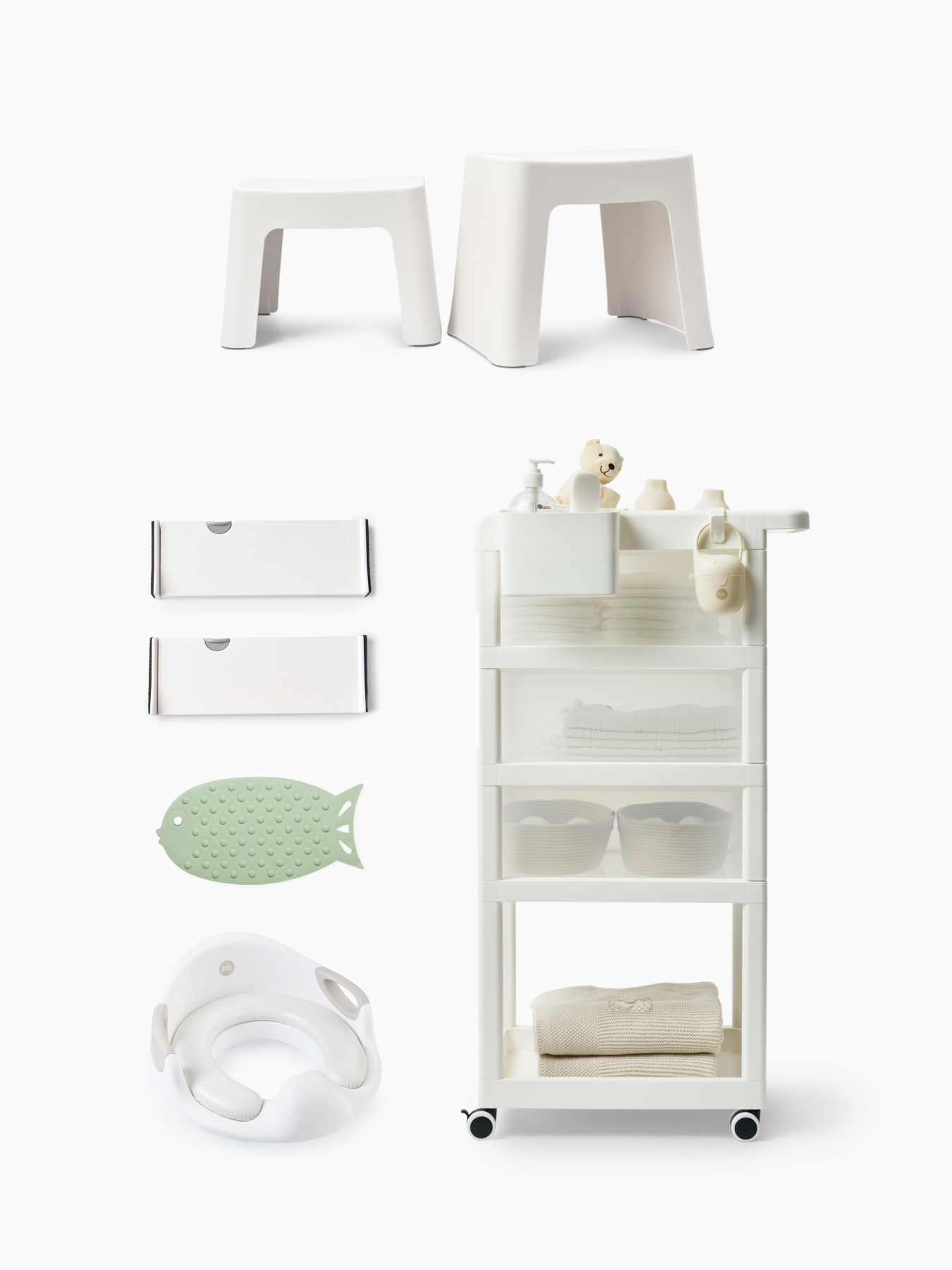 В набор из 4 предметов входит: • Стеллаж с ящиками STORIO • Коврик для купания "FISH" • Подставка под ноги MOBI 2 шт. • Накладка на унитаз с ручками BONUS Стеллаж с ящиками STORIO Артикул : 91044 Кол-во в наборе : 1 Цвет : белый Состав : полипропилен Функциональный стеллаж для идеального порядка. Вместительные ящики скрывают всё лишнее, а открытые полки позволяют красиво расставить декор или книги. Отлично впишется в любой интерьер. Коврик для купания "FISH" Артикул: 34011 Кол-во в наборе: 1 Цвет: зеленый Состав: резина Резиновый коврик в виде забавной рыбки легко крепится ко дну ванны или душевой кабины, делая купание малыша безопасным. Фактурная поверхность коврика массажирует стопы ножек и развивает тактильные ощущения, позволяя малышу сравнить различные поверхности и удивиться многообразию окружающего мира. Подставка под ноги MOBI 2 шт. Артикул: 91042 Кол-во в наборе: 2 Цвет: белый Состав: полипропилен Идеальна для маленьких помощников! Подставка поможет ребенку дотянуться до раковины, кухни или полок. Устойчивая конструкция и легкий вес делают ее удобной в использовании. Накладка на унитаз с ручками BONUS Артикул: 34023 Кол-во в наборе: 1 Цвет: серый Состав: полипропилен, термопластичная резина, поливинилхлорид, поролон Накладка на унитаз BONUS с удобными ручками, мягким комфортным сидением и обтекаемой формой - обеспечит малышу максимальный комфорт и поможет привыкнуть ко взрослому туалету. Накладка фиксируется под любой ободок для всех типов унитазов. Высокий бортик спереди защитит от капель и брызг, а мягкое сидение легко снимается и моется. Изготовлено из безопасных материалов. Уважаемые покупатели! Оттенок изделия вживую может незначительно отличаться от фотографий на вашем экране
