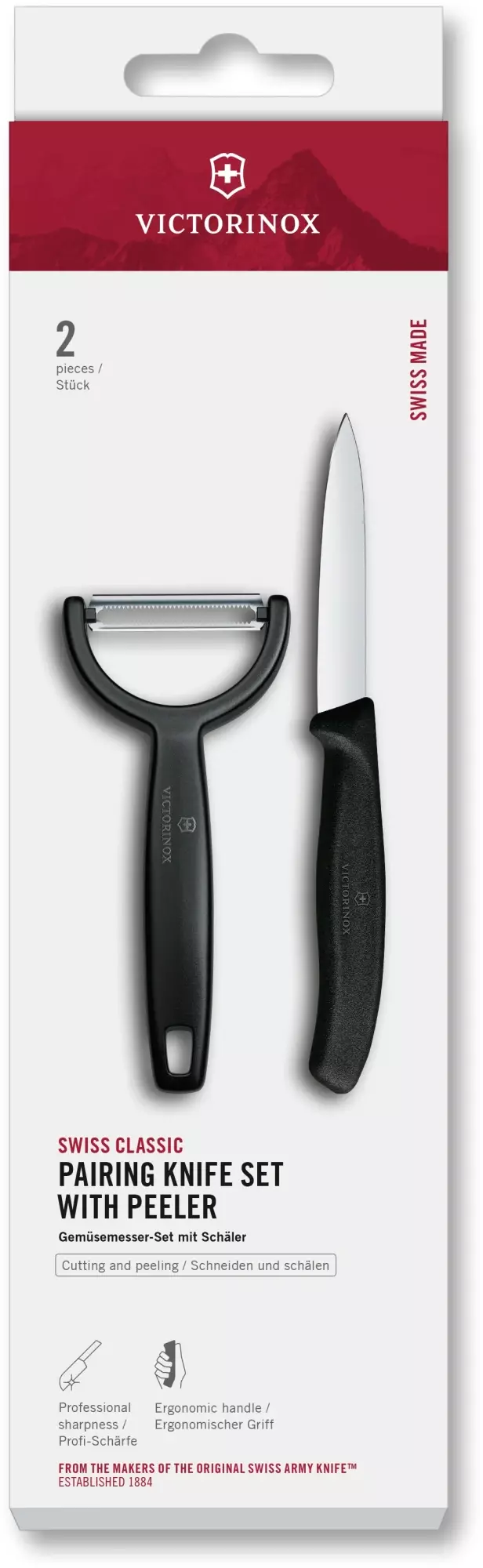 Состав комплектаВ комплекте нож черного цвета прямой заточки с заостренным кончиком, длиной лезвия 8 см, овощечистка Ypso черного цвета серрейт заточкой