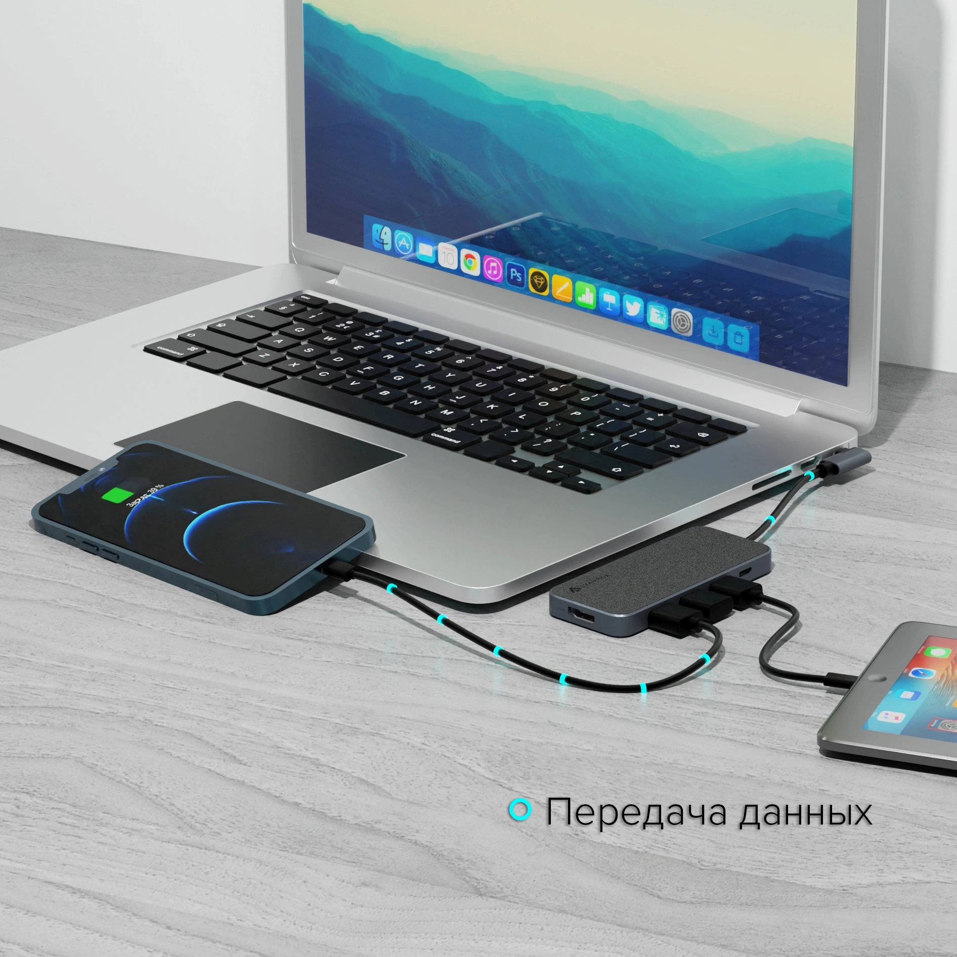 Особенности3xUSB-A: USB3.0 стандарт, 5 Гбит/с; (Общая выходная мощность: 5В*2.7А max); 1xHDMI: поддержка разрешения до 4Kx2K(3840x2160)@30Гц/ обратная совместимость с 1080P 720P и ниже @60Гц/ @30Гц; 1xType-C: PD 3.0 (до 100 Вт)