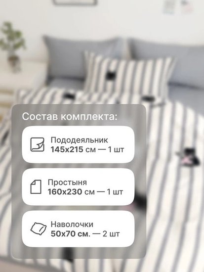 • Комплект 1 простыня + 1 пододеяльник + 2 наволочки