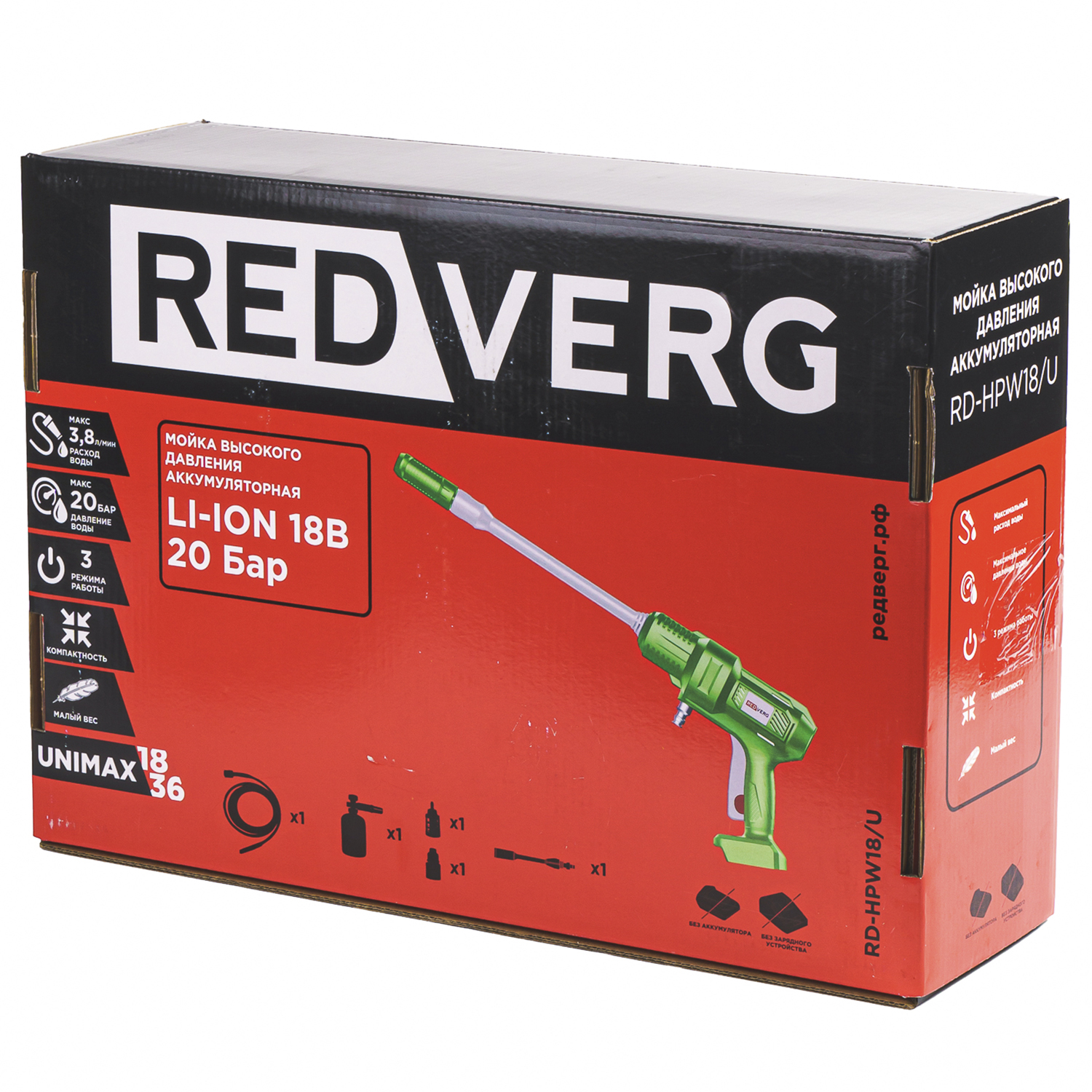 Аккумуляторная мойка высокого давления REDVERG RD-HPW18/U: мобильность и мощность для безупречной чистоты