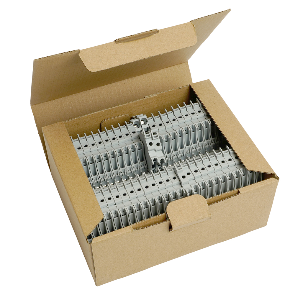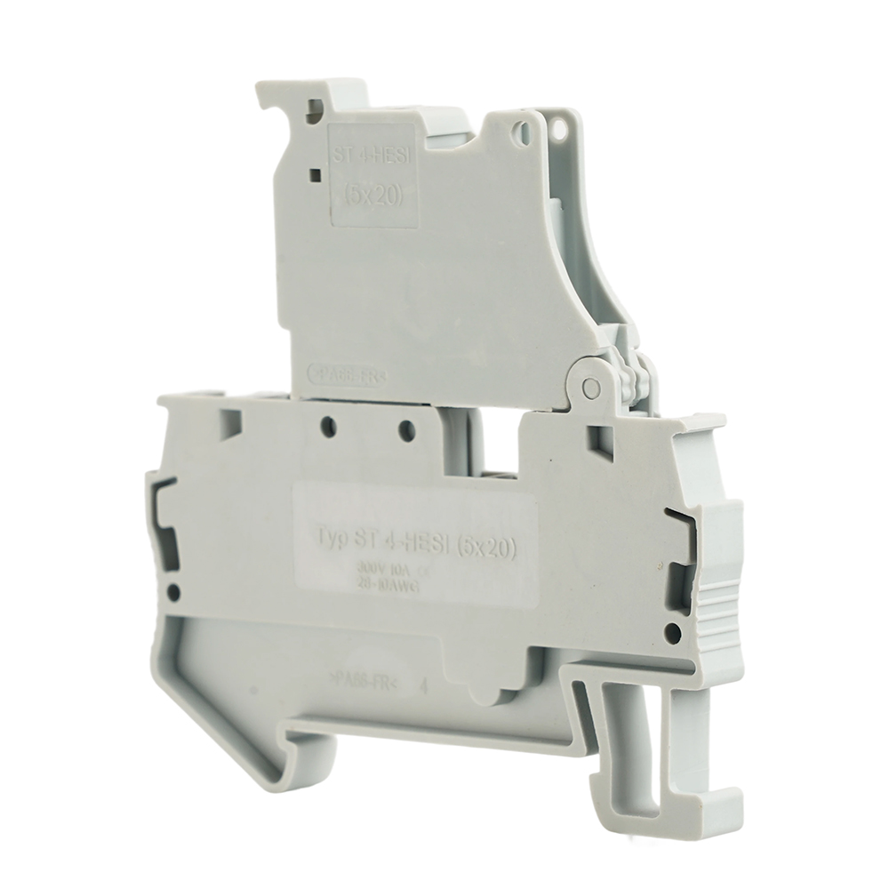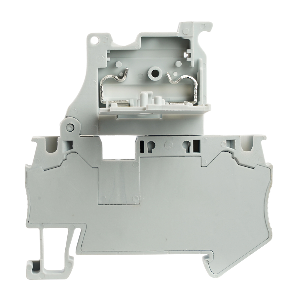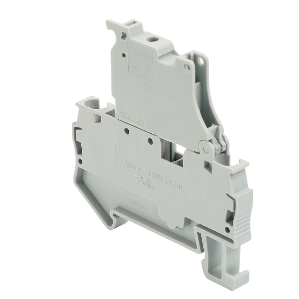 Зажим пружинный STEKKER, 2-проводной проходной 4,0 мм² (JXB ST 4) с размыкателем и предохранителем, LD552-1-00, серый 50188