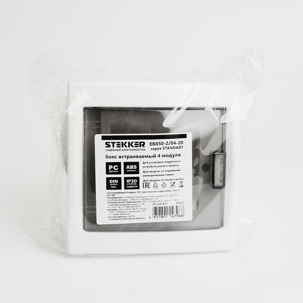 Бокс встраиваемый STEKKER EBX50-2/04-20 4 модуля, пластик, серия ArcaClass 49632