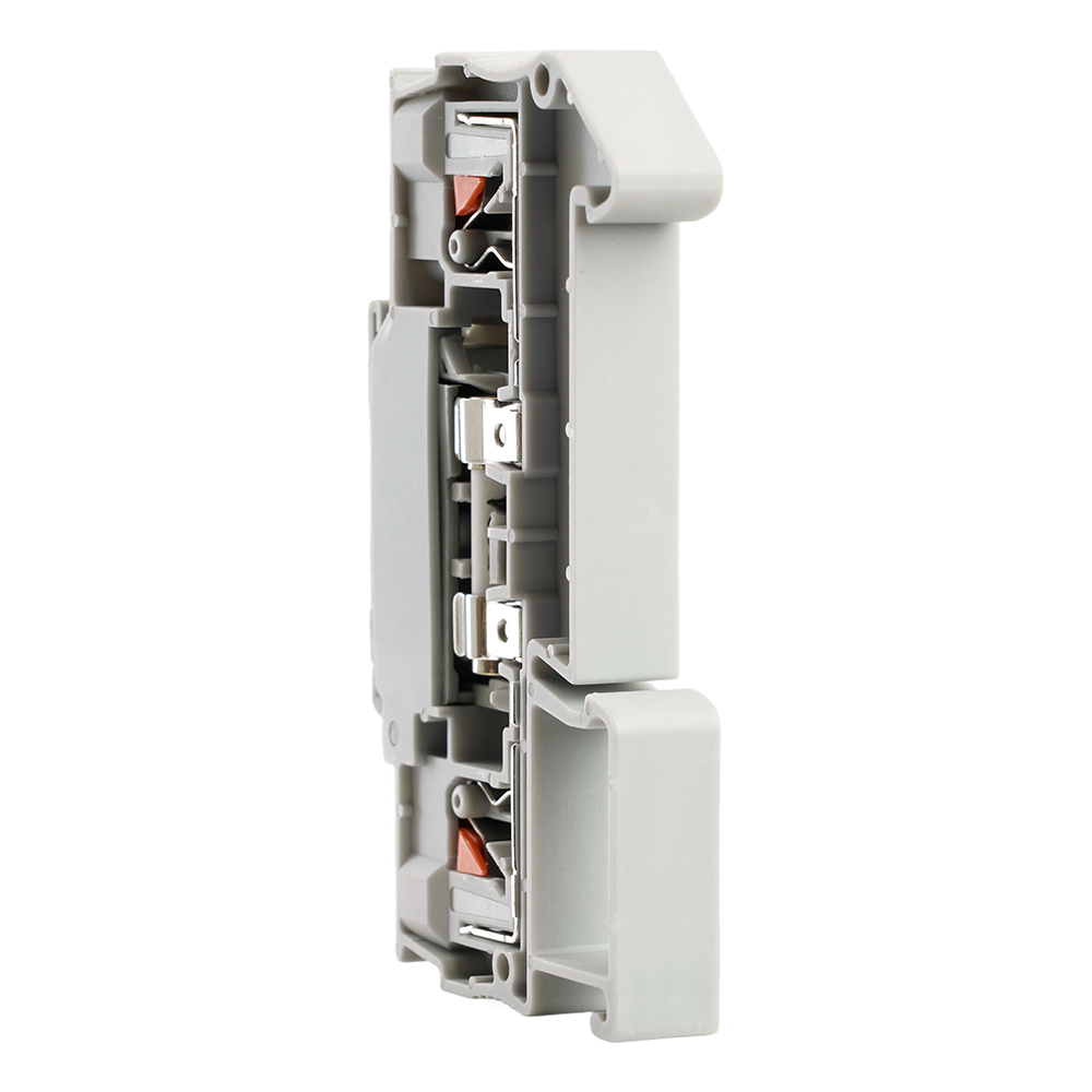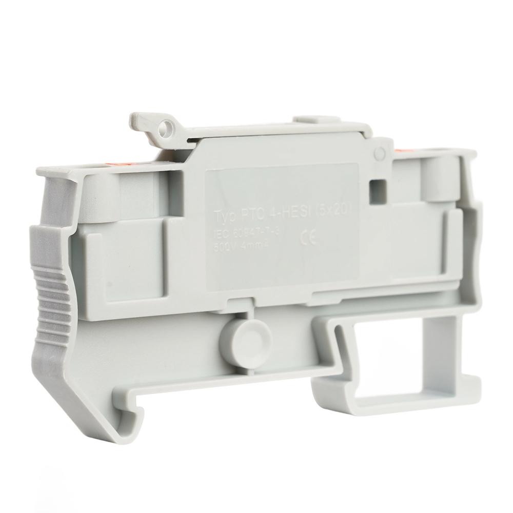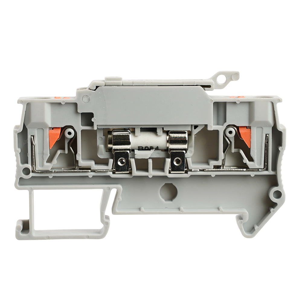 Зажим самозажимной STEKKER, 2-проводной проходной 4,0 мм² (JXB PT 4) c размыкателем и предохранителем, LD572-1-01, серый 50190